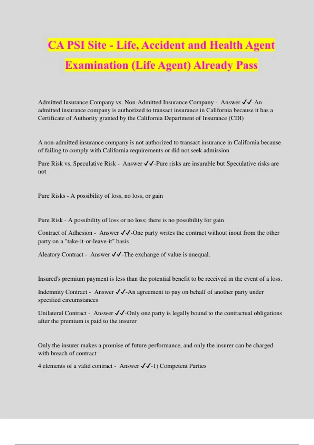 CA PSI Site - Life, Accident and Health Agent Examination (Life Agent) Already Pass