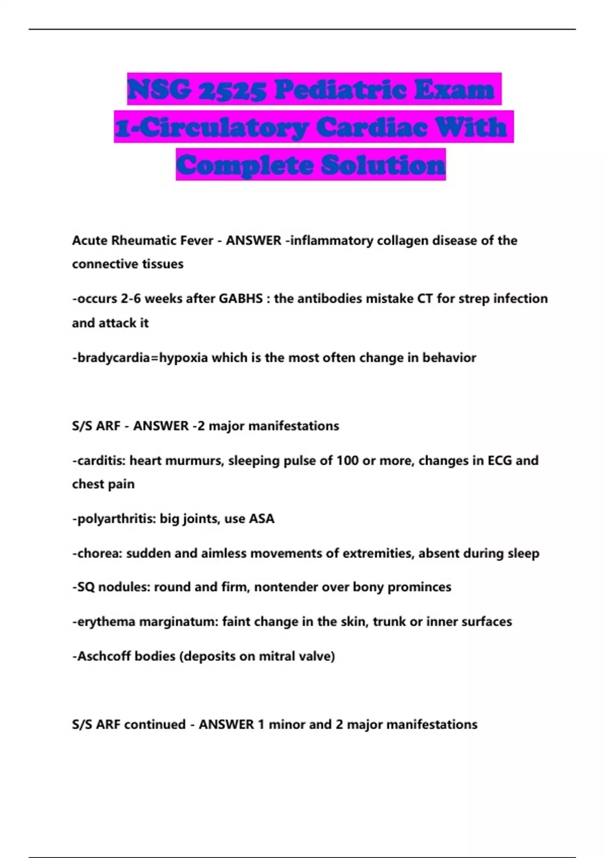 NSG 2525 Pediatric Exam 1-Circulatory Cardiac With Complete Solution...