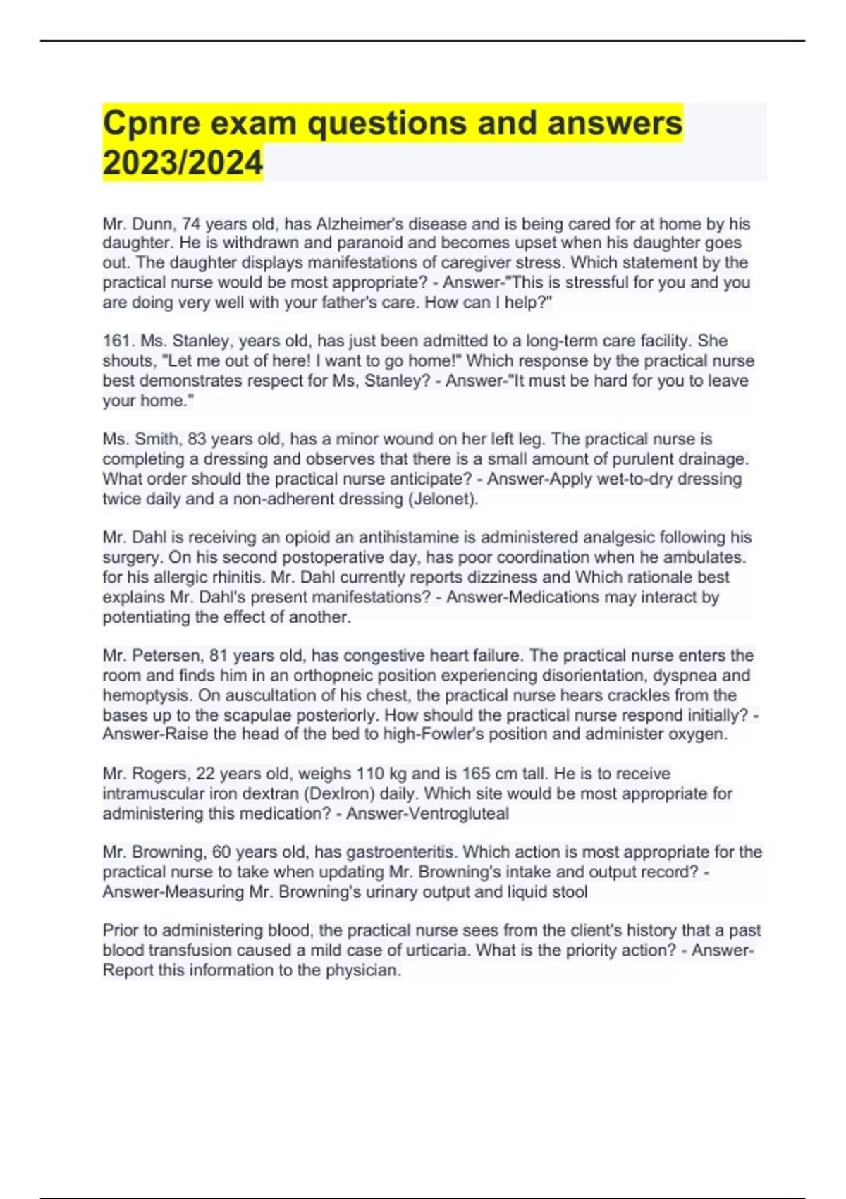 practical nurse would be most appropriate? - Answer-"This is stressful for you and you