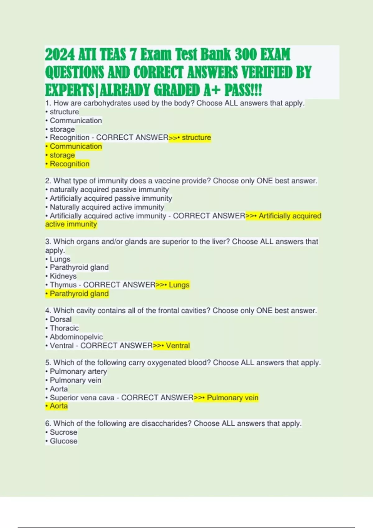 2024 ATI TEAS 7 Exam Test Bank 300 EXAM QUESTIONS AND CORRECT ANSWERS VERIFIED BY EXPERTS|ALREADY GRADED A+ PASS!!!