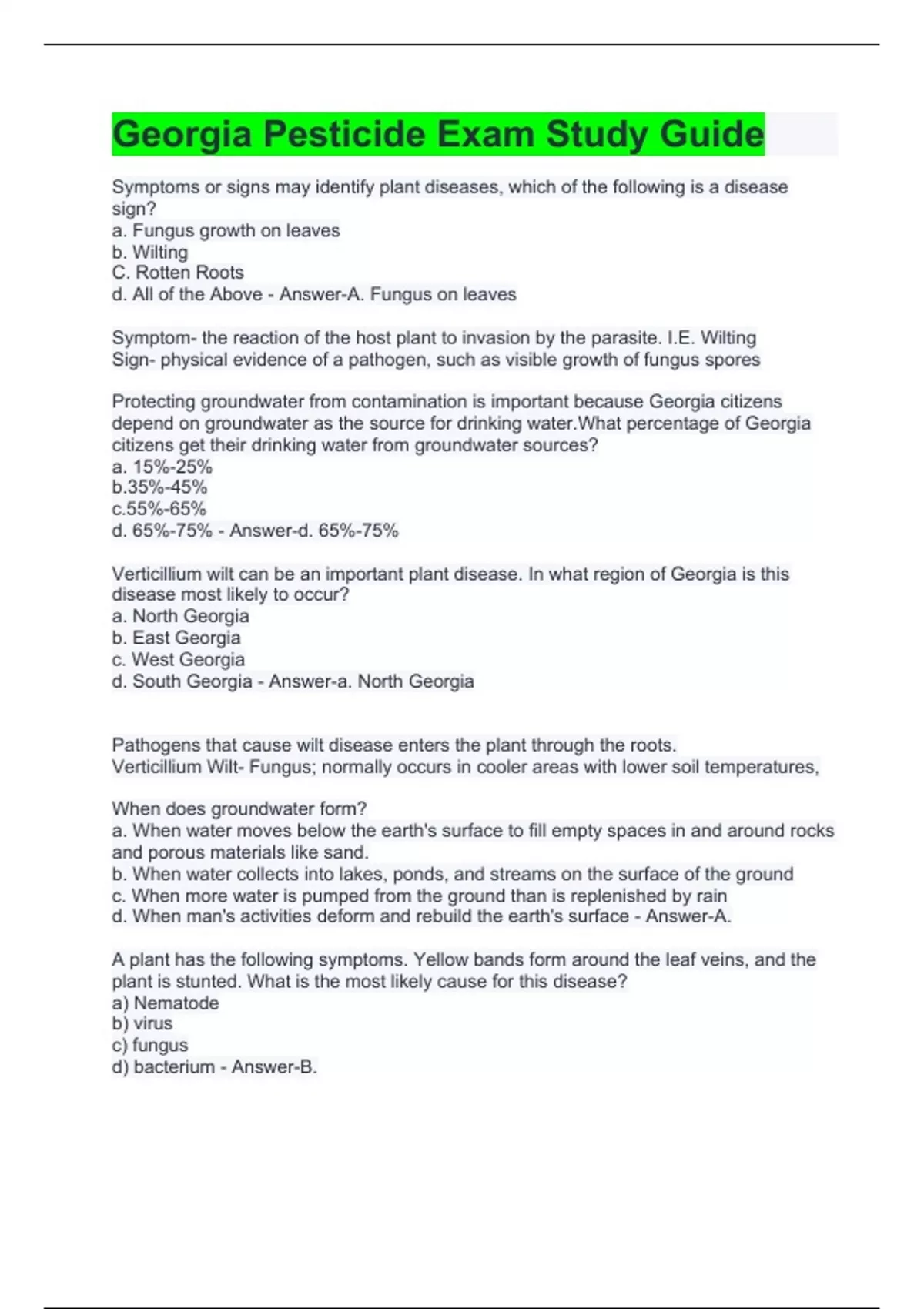 Georgia Pesticide Exam Study Guide