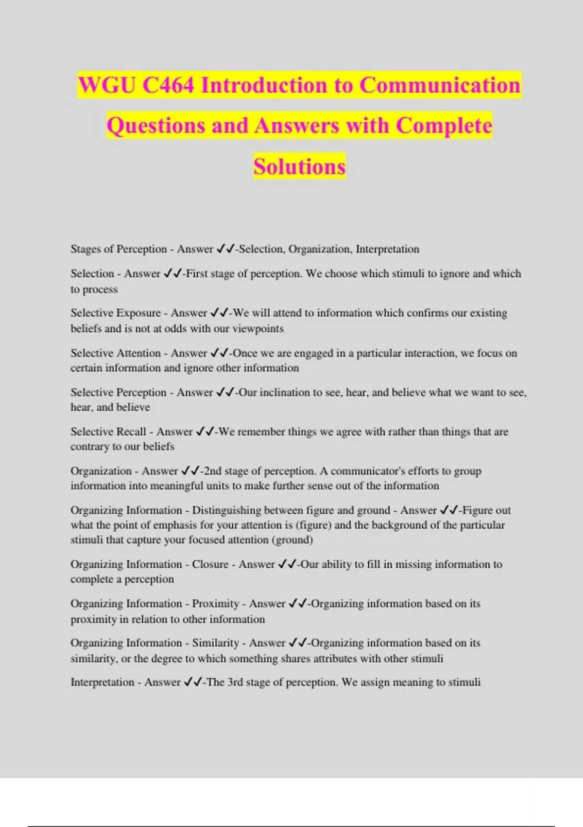 WGU C464 Introduction to Communication Questions and Answers with Complete Solutions