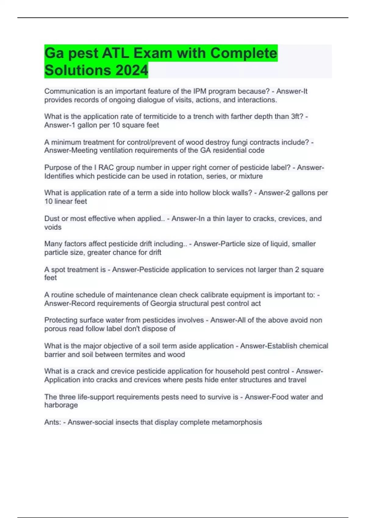 Ga pest ATL Exam with Complete Solutions 2024
