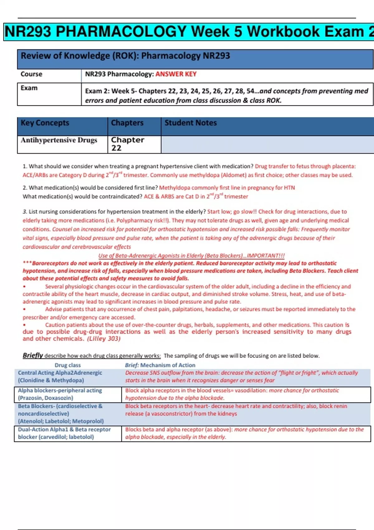nr293 pharmacology week 5 workbook exam 2