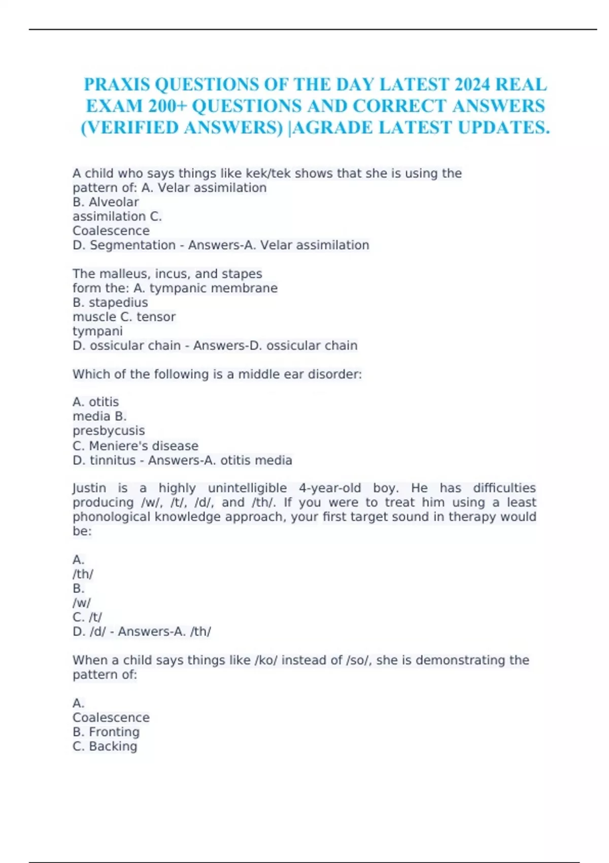 PRAXIS QUESTIONS OF THE DAY LATEST 2024 REAL EXAM 200+ QUESTIONS AND CORRECT ANSWERS (VERIFIED ANSWERS) |AGRADE LATEST UPDATES.