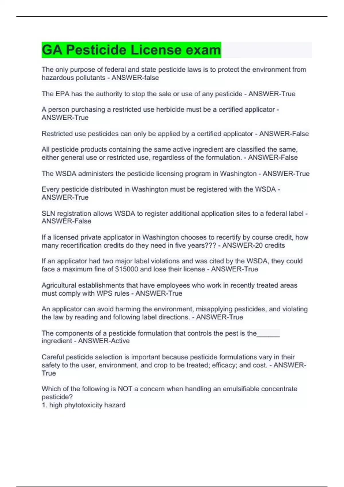 GA Pesticide License exam