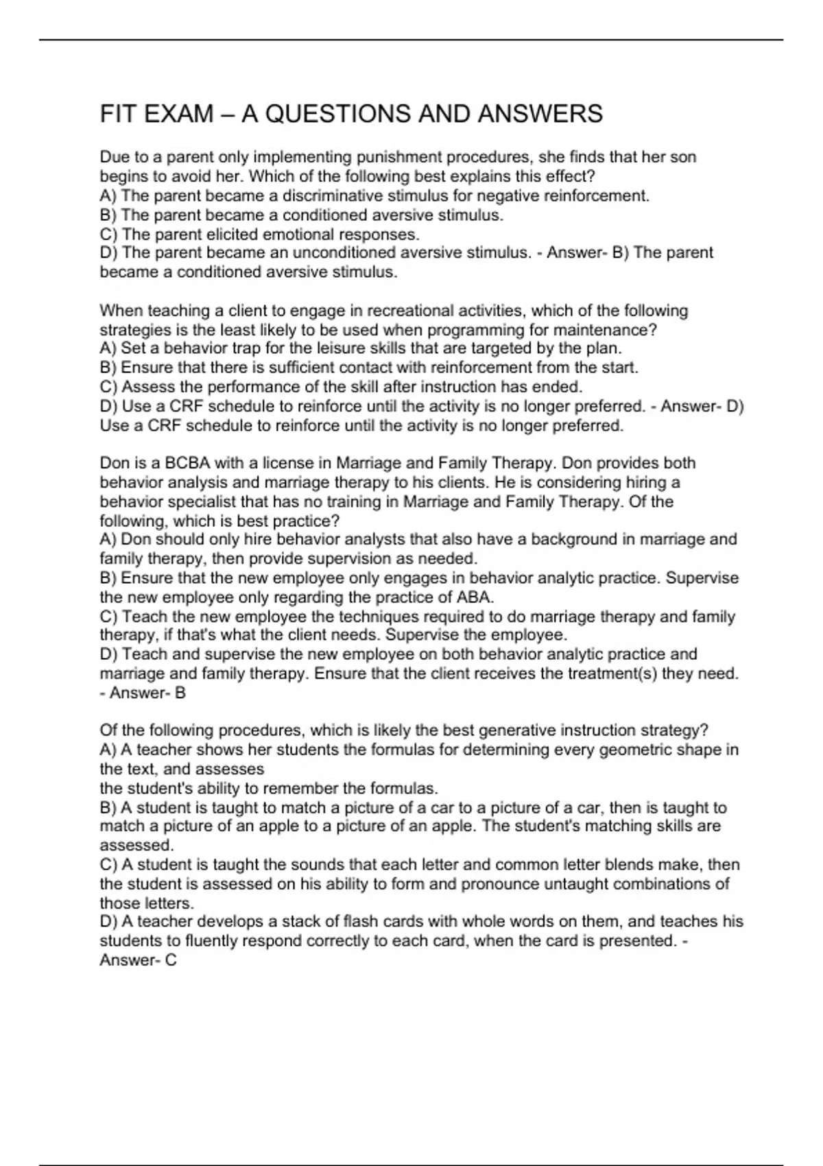 FIT EXAM – A QUESTIONS AND ANSWERS