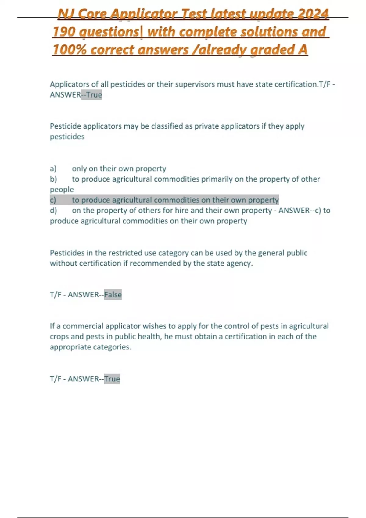 NJ Core Applicator Test latest update 2024 190 questions| with complete solutions and 100% correct answers /already graded A