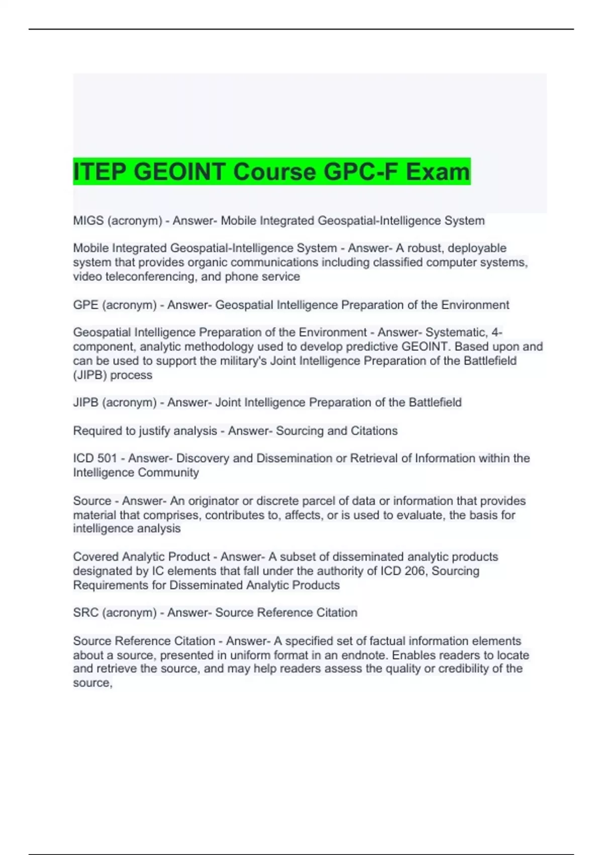 ITEP GEOINT Course GPC-F Exam 2024 Questions and Answers