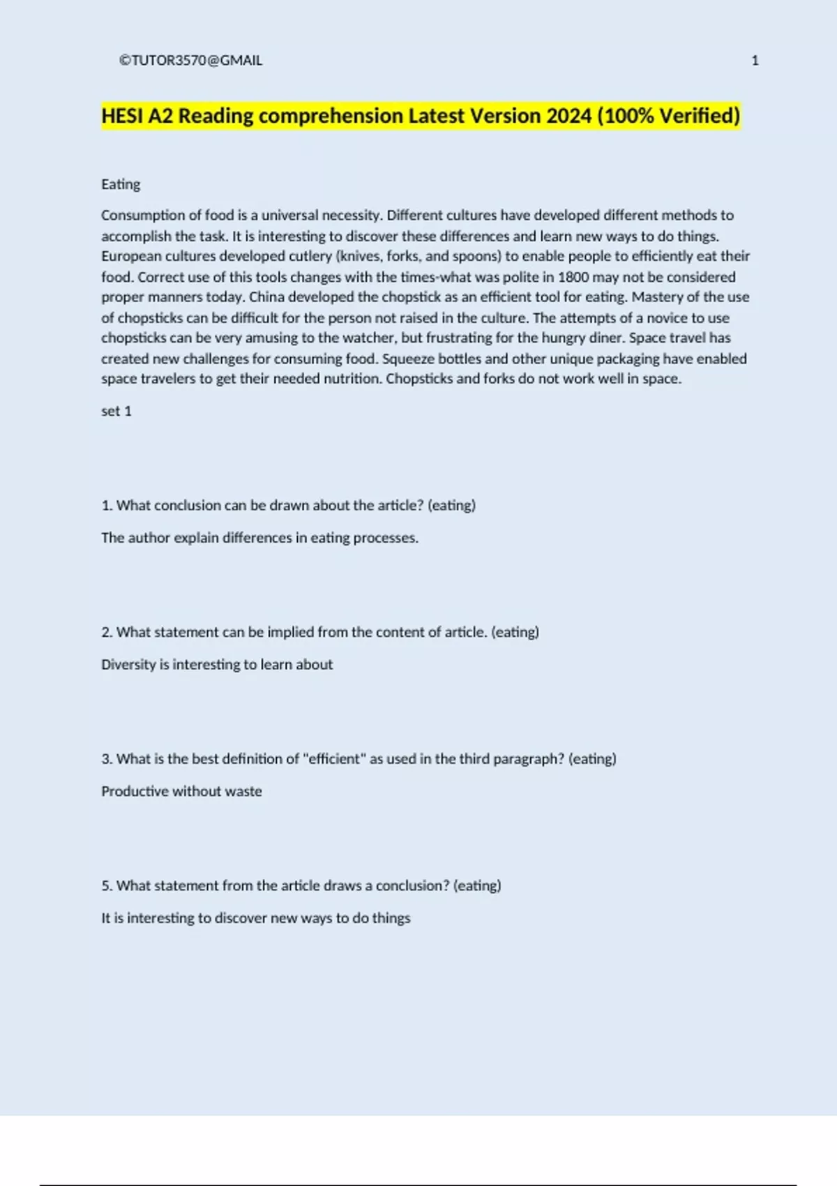 hesi a2 reading comprehension latest version 2024