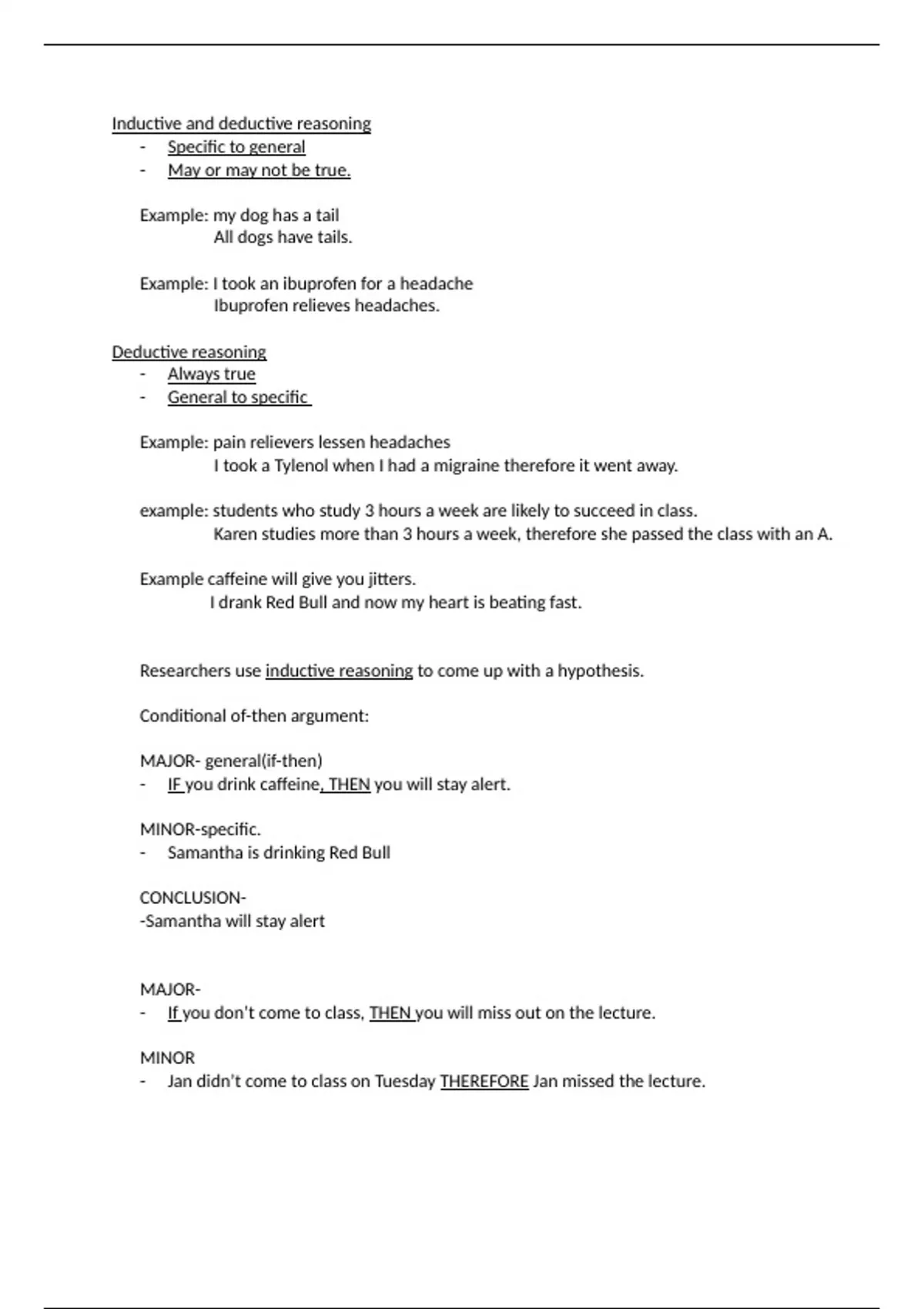 notes on deductive and indictive reading, how to form if/then staments.