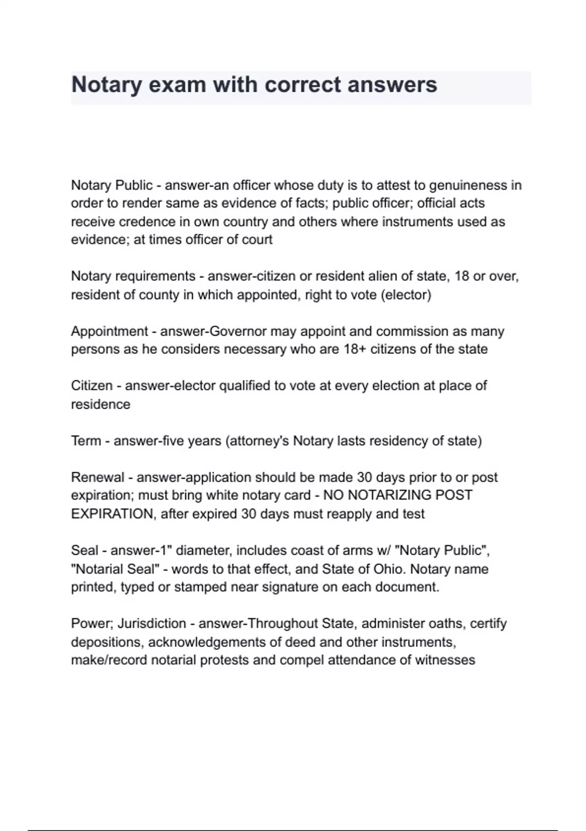 Notary exam with correct answers