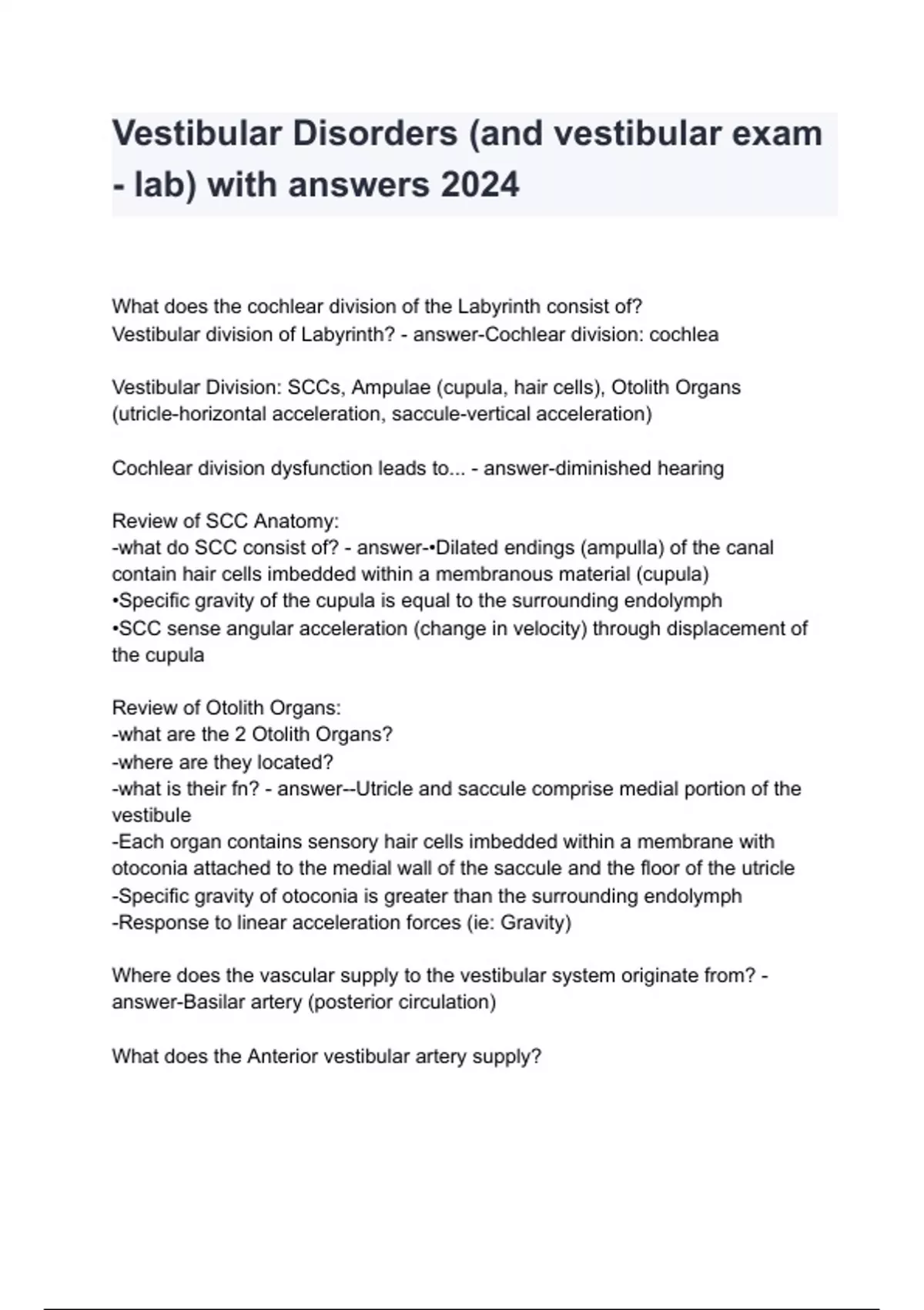Vestibular Disorders (and vestibular exam - lab) with answers 2024