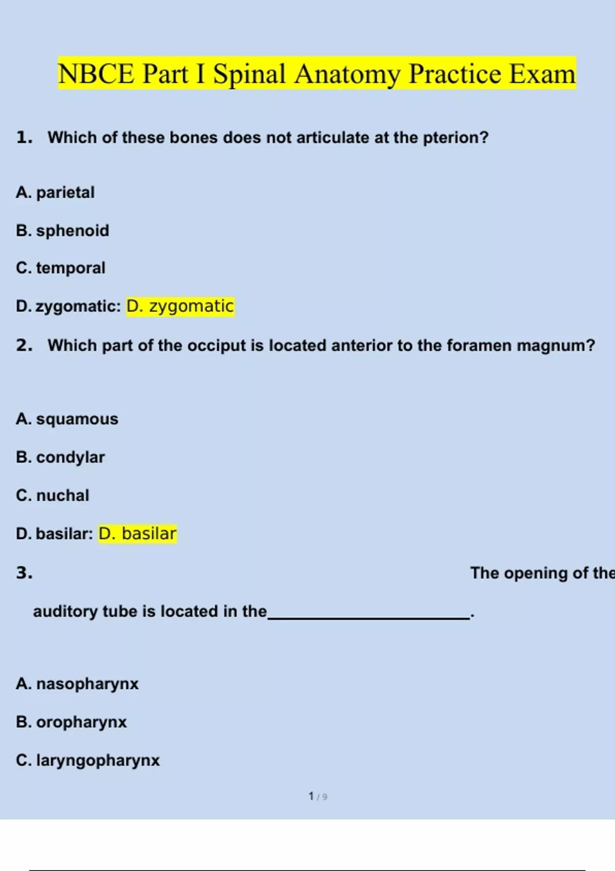 NBCE Part I Spinal Anatomy Practice Exam | Questions with 100% Correct Answers | Verified | Updated 2024