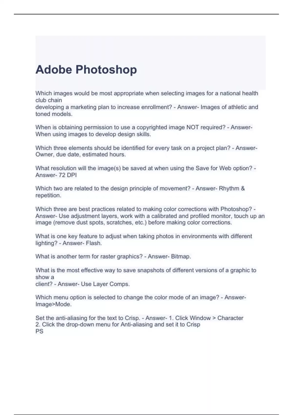 Adobe Photoshop Exam Questions and Answers -Graded A