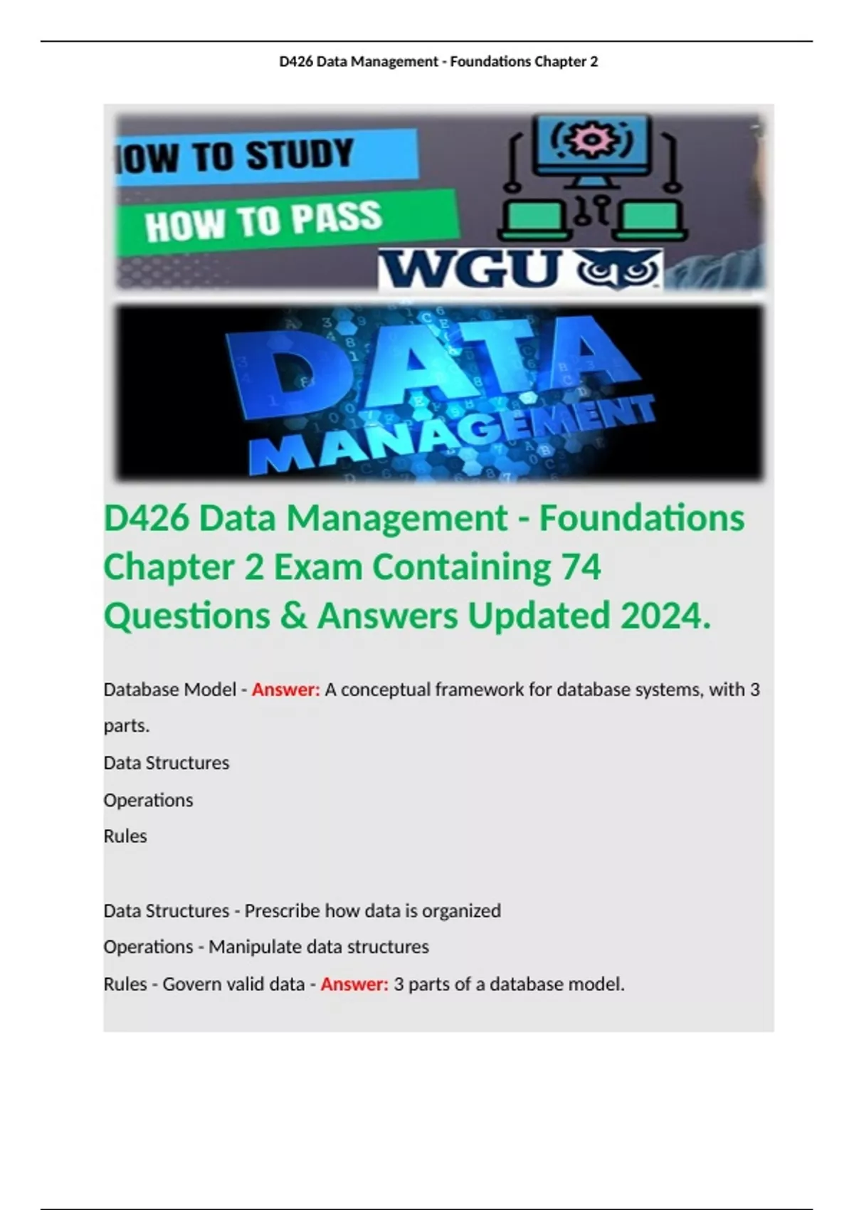 Database Model - Answer: A conceptual framework for database systems, with 3