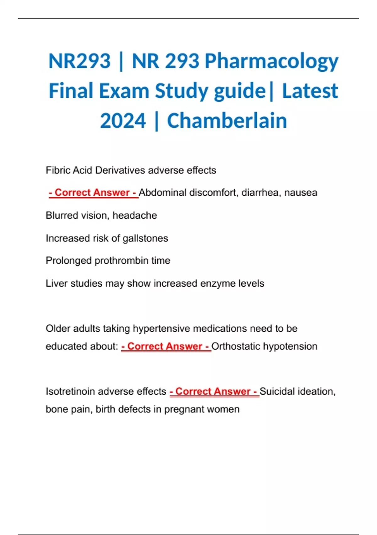 NR293 | NR 293 Pharmacology Final Exam Study guide| Latest 2024 | Chamberlain