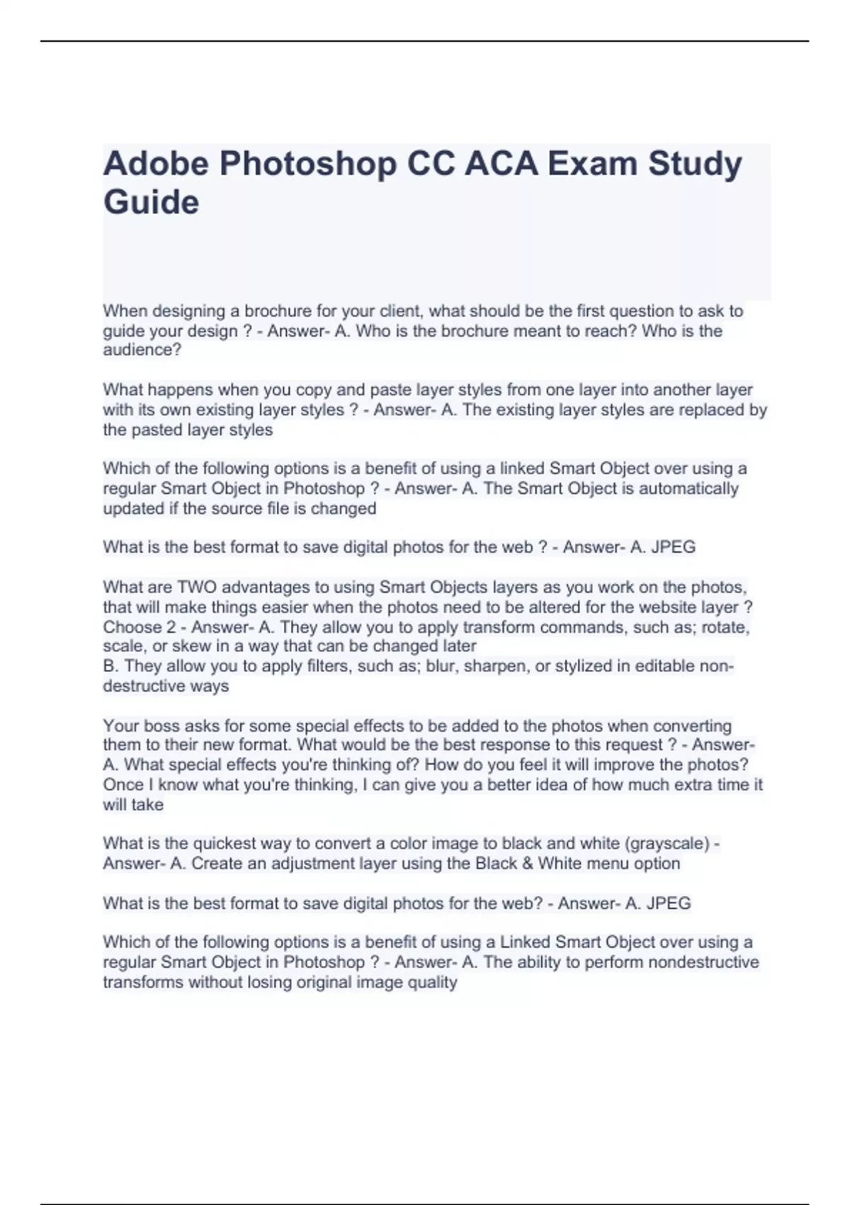 adobe photoshop cc aca exam study guide