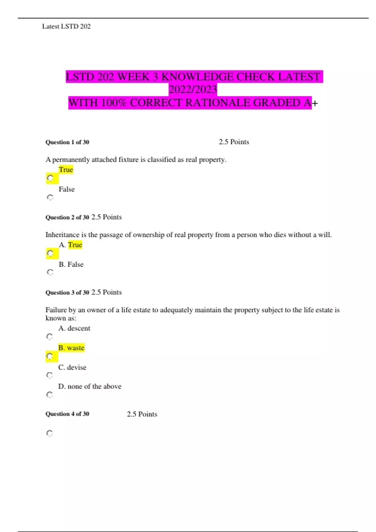LSTD 202 WEEK 3 KNOWLEDGE CHECK LATEST 2022/2023 WITH 100% CORRECT RATIONALE GRADED A+