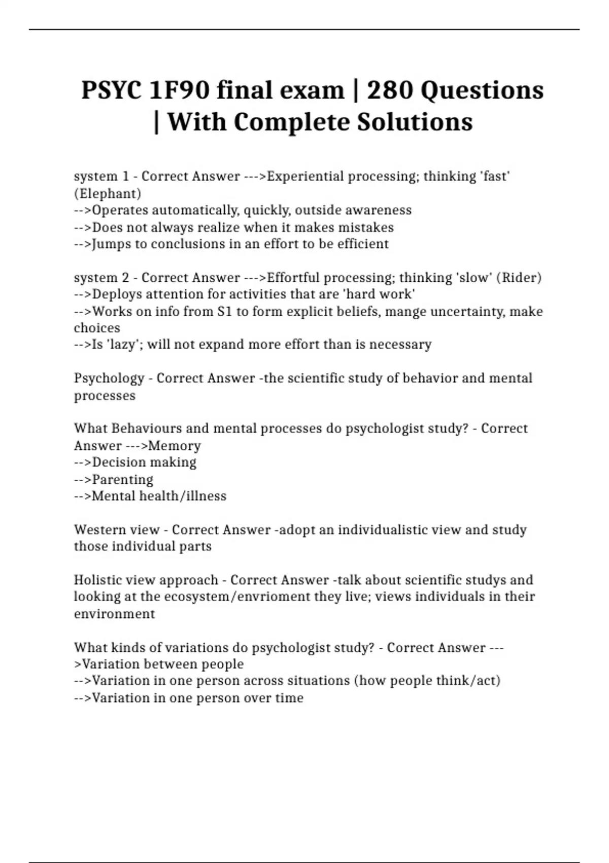 psyc 1f90 final exam 280 questions with comple