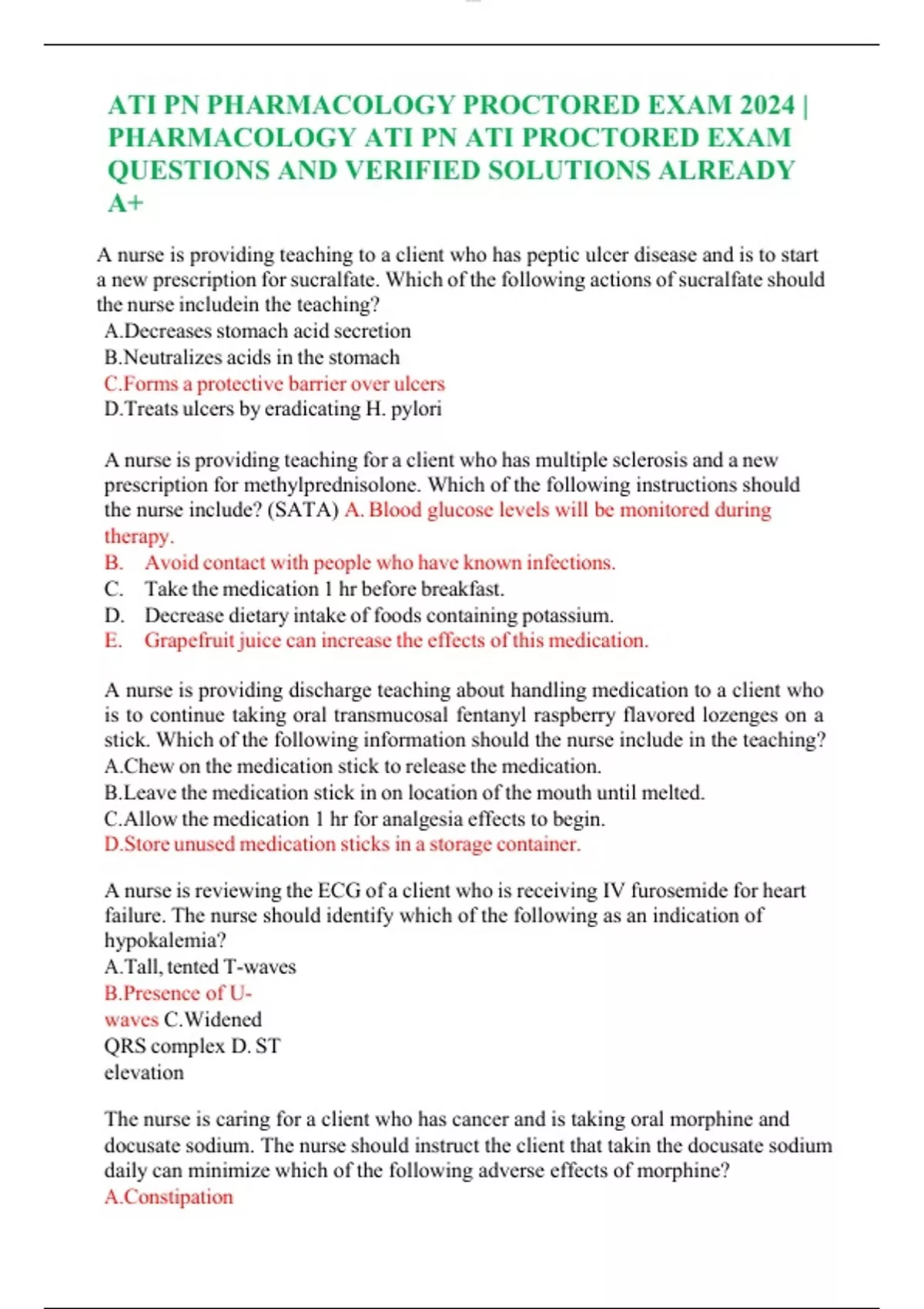 ATI PN PHARMACOLOGY PROCTORED EXAM 2024 | PHARMACOLOGY ATI PN ATI PROCTORED EXAM QUESTIONS AND VERIFIED SOLUTIONS ALREADY A+