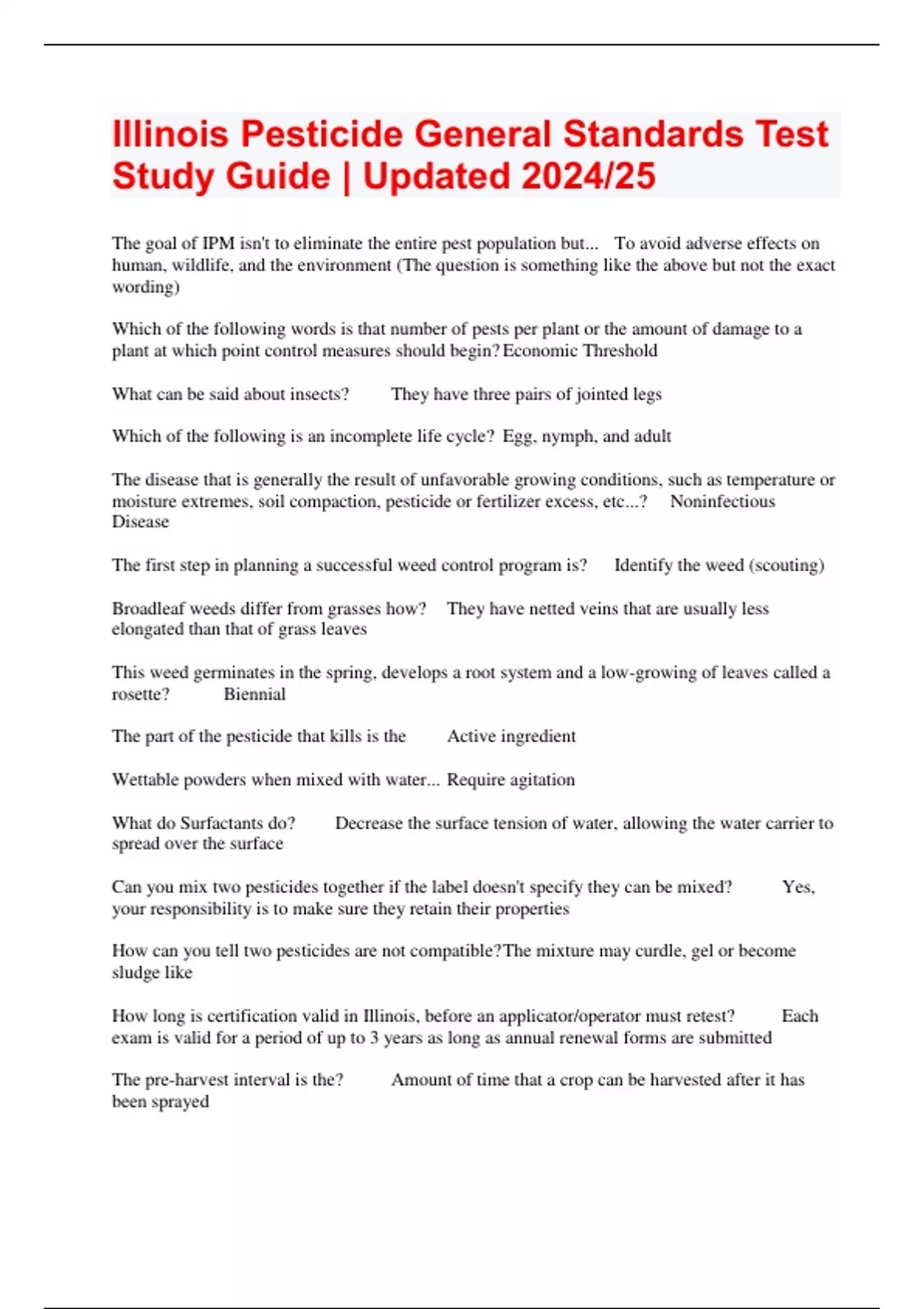 Illinois Pesticide General Standards Test Study Guide | Updated 2024/25
