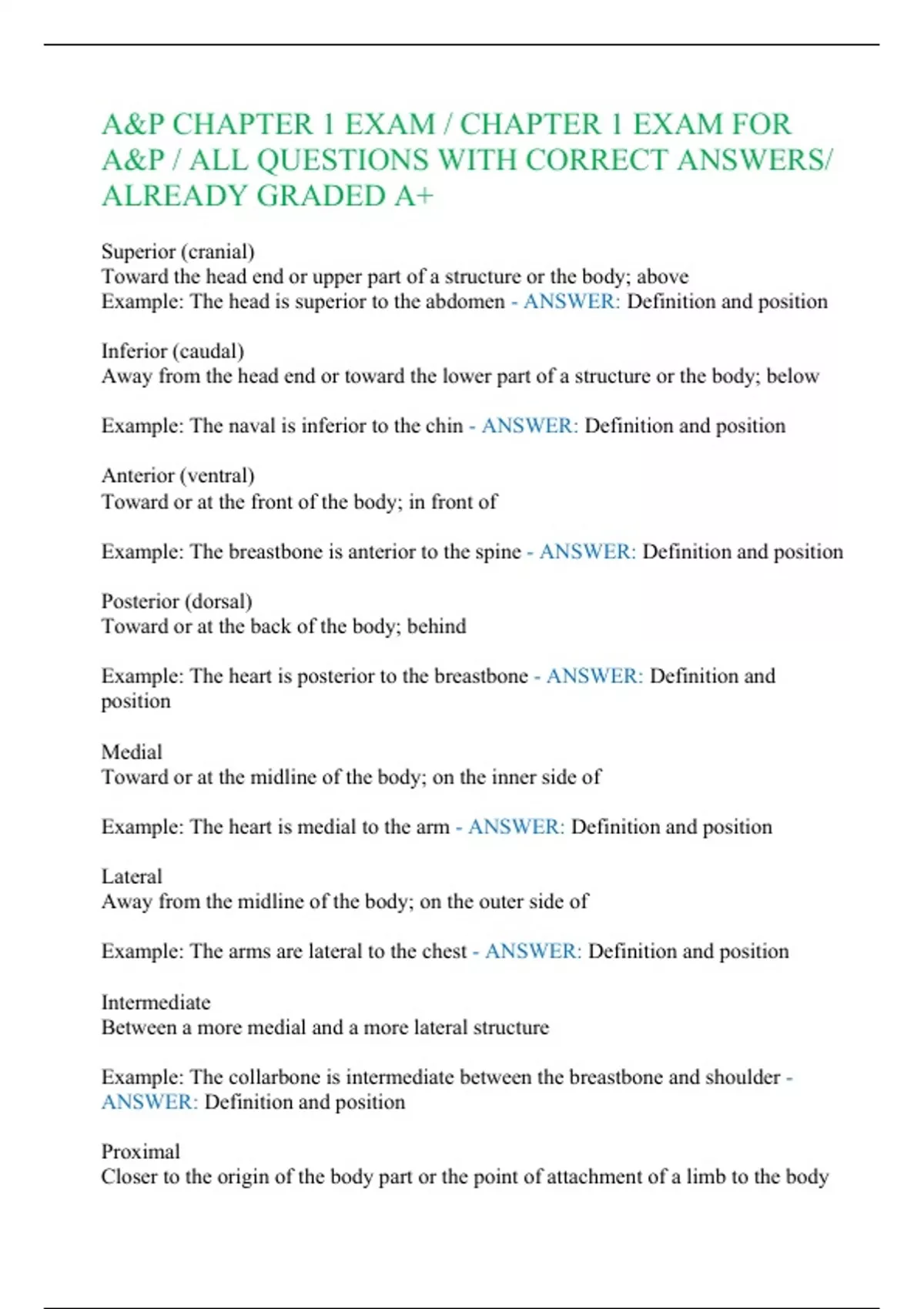 A&P CHAPTER 1 EXAM / CHAPTER 1 EXAM FOR A&P / ALL QUESTIONS WITH CORRECT ANSWERS/ ALREADY GRADED A+