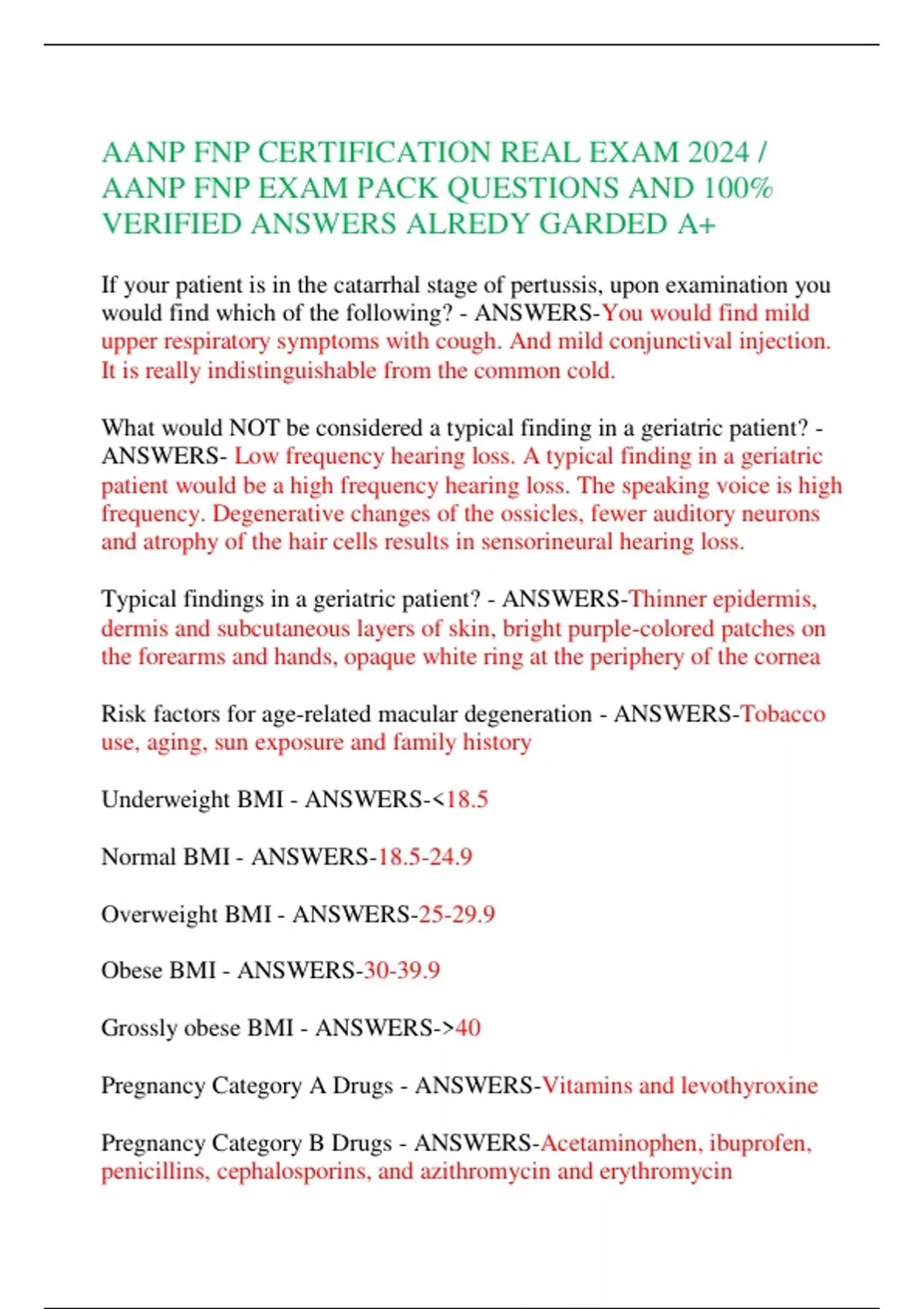 AANP FNP CERTIFICATION REAL EXAM 2024 / AANP FNP EXAM PACK QUESTIONS AND 100% VERIFIED ANSWERS ALREDY GARDED A+