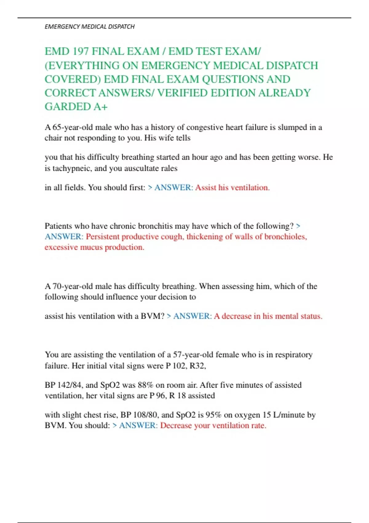 EMD 197 FINAL EXAM / EMD TEST EXAM/ (EVERYTHING ON EMERGENCY MEDICAL DISPATCH COVERED) EMD FINAL EXAM QUESTIONS AND CORRECT ANSWERS/ VERIFIED EDITION ALREADY GARDED A+