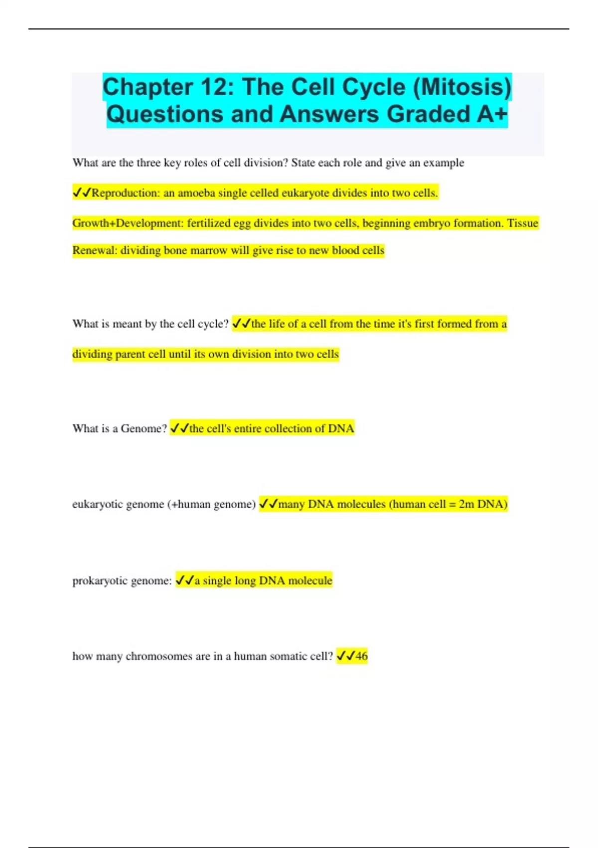 Chapter 12: The Cell Cycle (Mitosis) Questions and Answers Graded A+