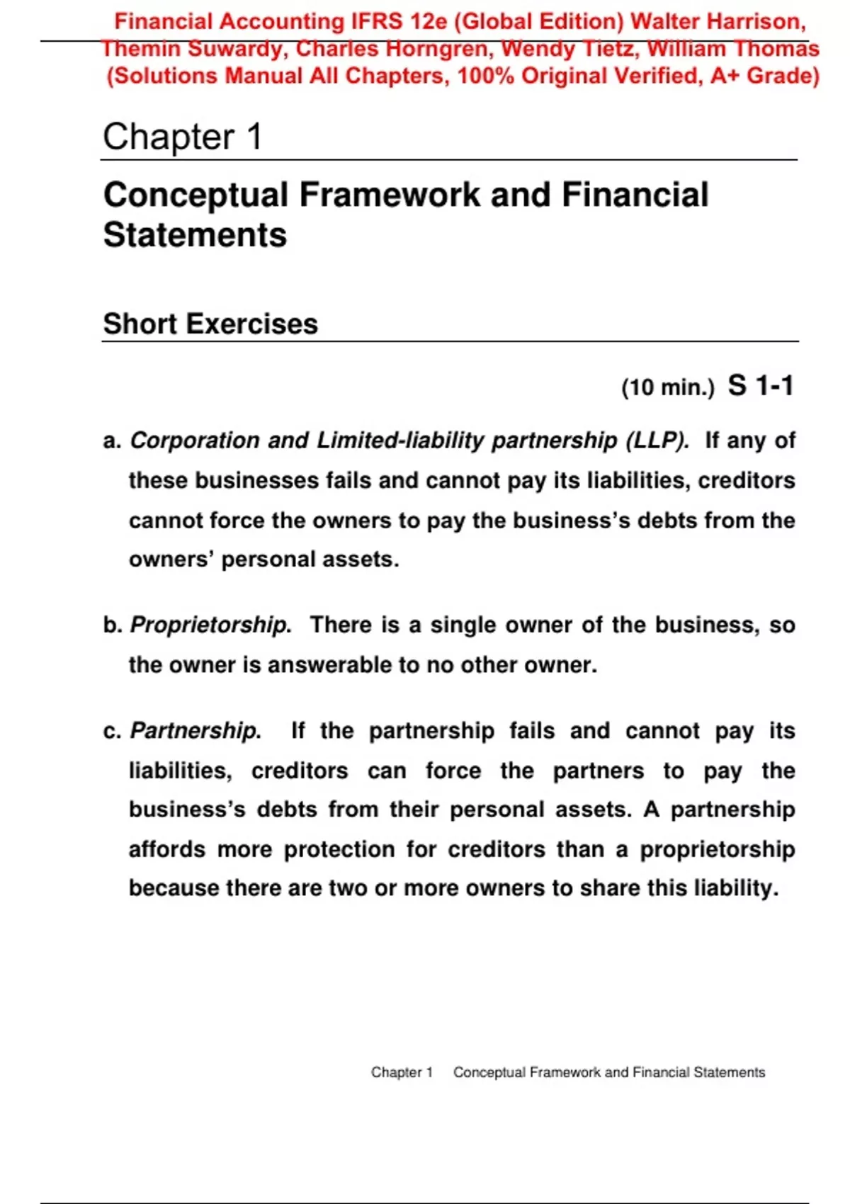 Solutions Manual For Financial Accounting IFRS 12th Edition (Global Edition) By Walter Harrison, Themin Suwardy, Charles Horngren, Wendy Tietz, William Thomas (All Chapters, 100% Original Verified, A+ Grade)