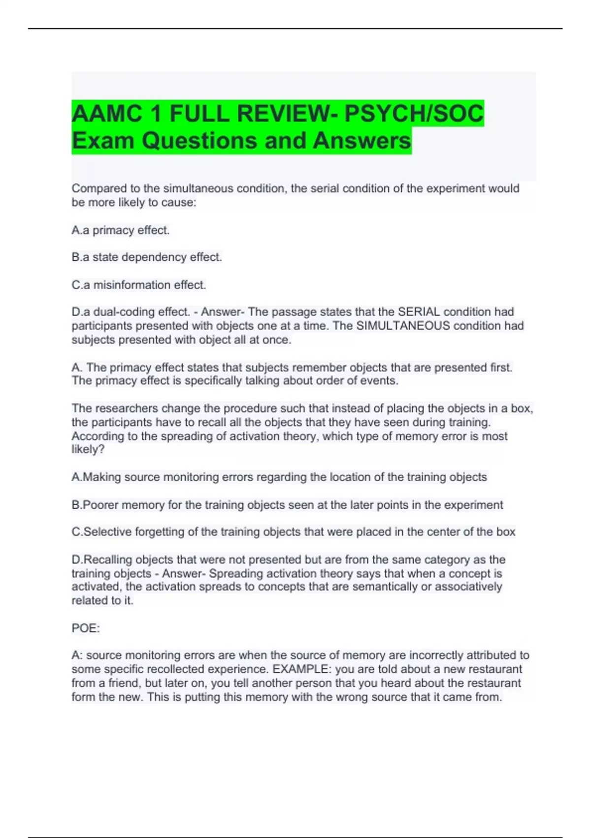 AAMC 1 FULL REVIEW- PSYCH-SOC Exam Questions and Answers