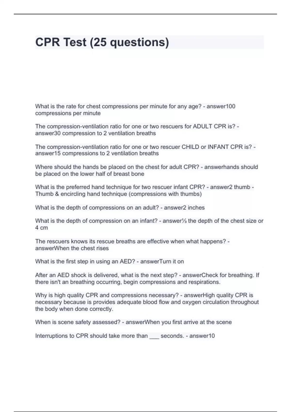 CPR Test (25 questions)