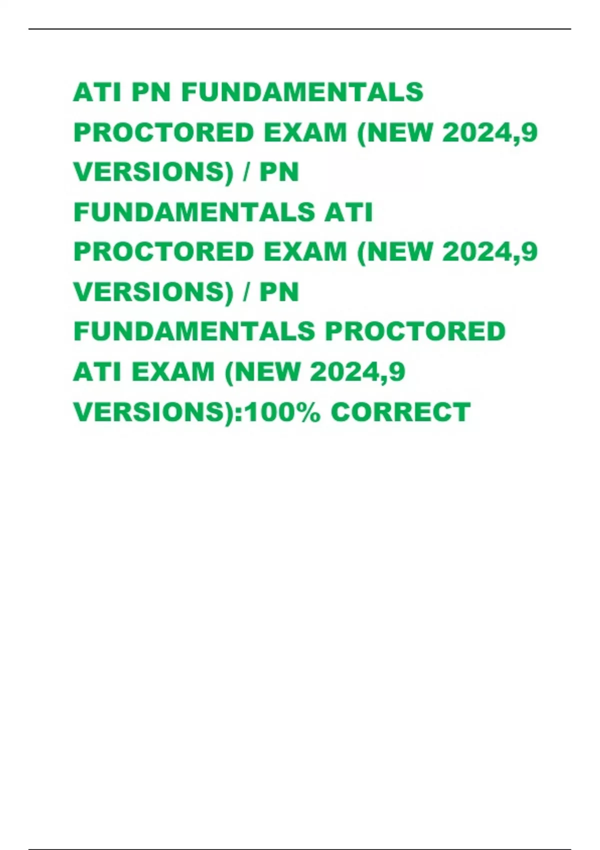 ATI PN FUNDAMENTALS PROCTORED EXAM (NEW 2024,9 VERSIONS) / PN FUNDAMENTALS ATI PROCTORED EXAM (NEW 2024,9 VERSIONS) / PN FUNDAMENTALS PROCTORED ATI EXAM (NEW 2024,9 VERSIONS):100% CORRECT