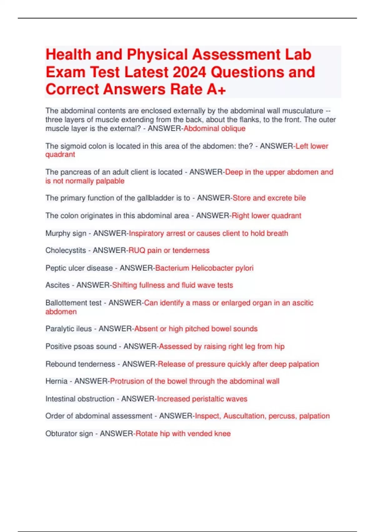 Health and Physical Assessment Lab Exam Test Latest 2024 Questions and Correct Answers Rate A+