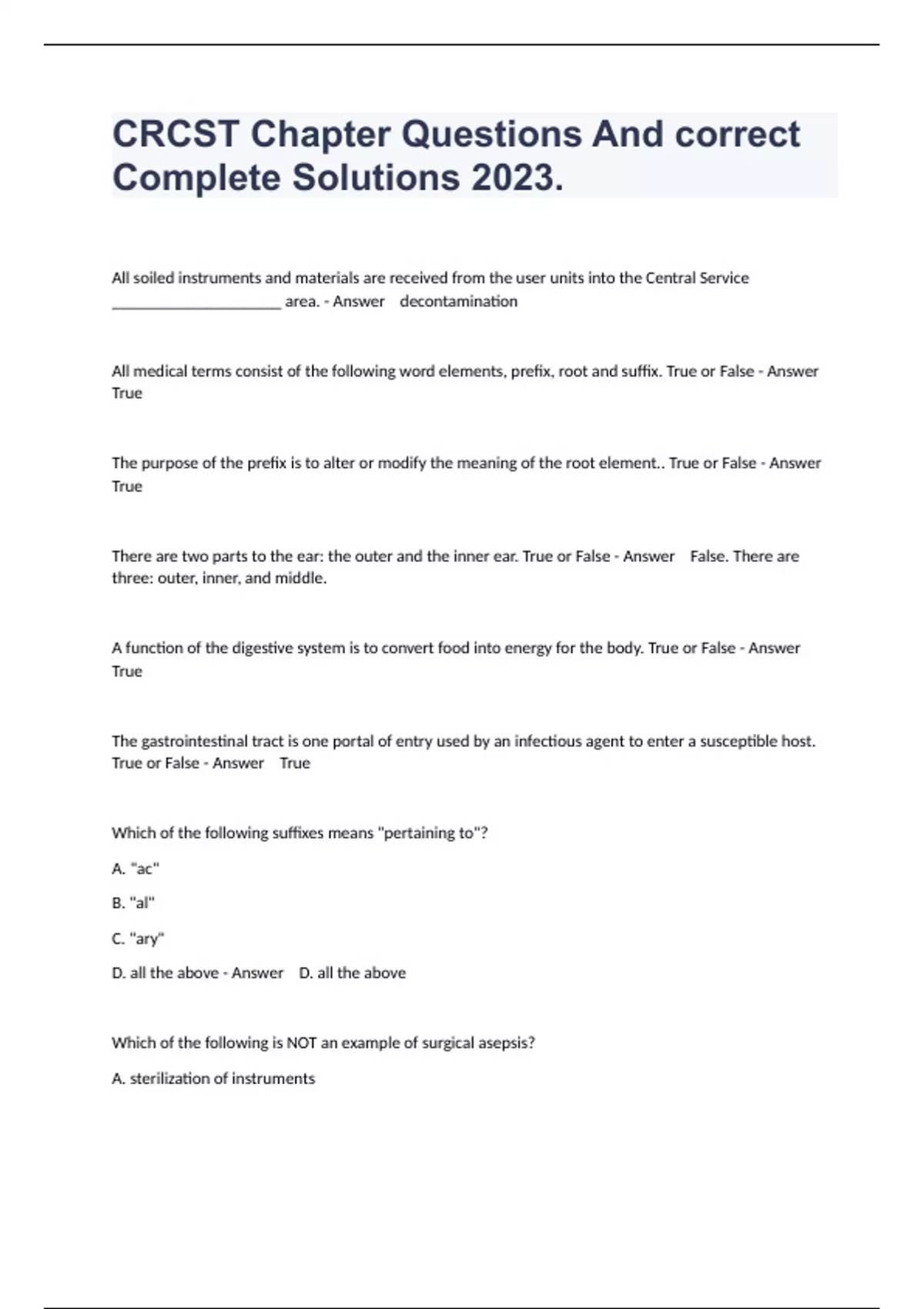 CRCST Chapter Questions And correct Complete Solutions .