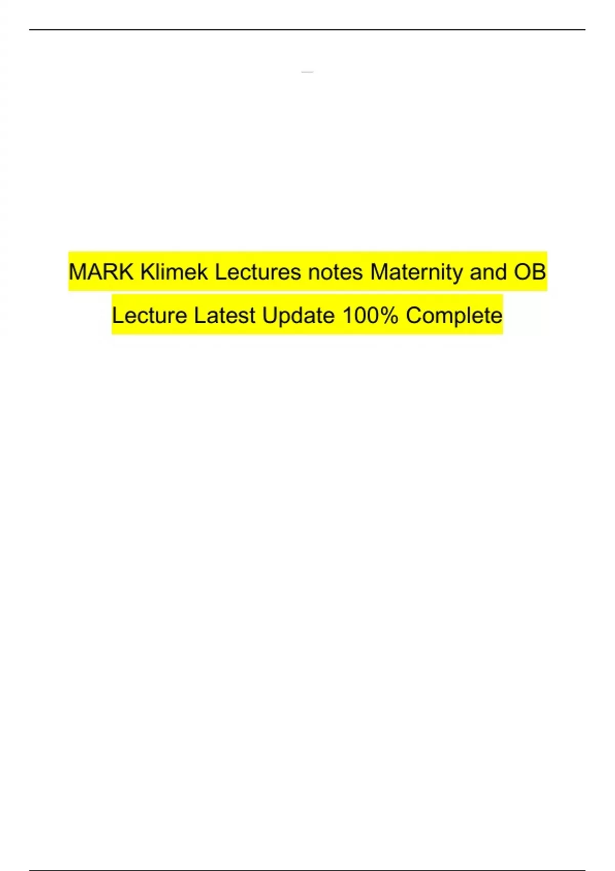 MARK Klimek Lectures notes Maternity and OB Lecture Latest Update 100% Complete