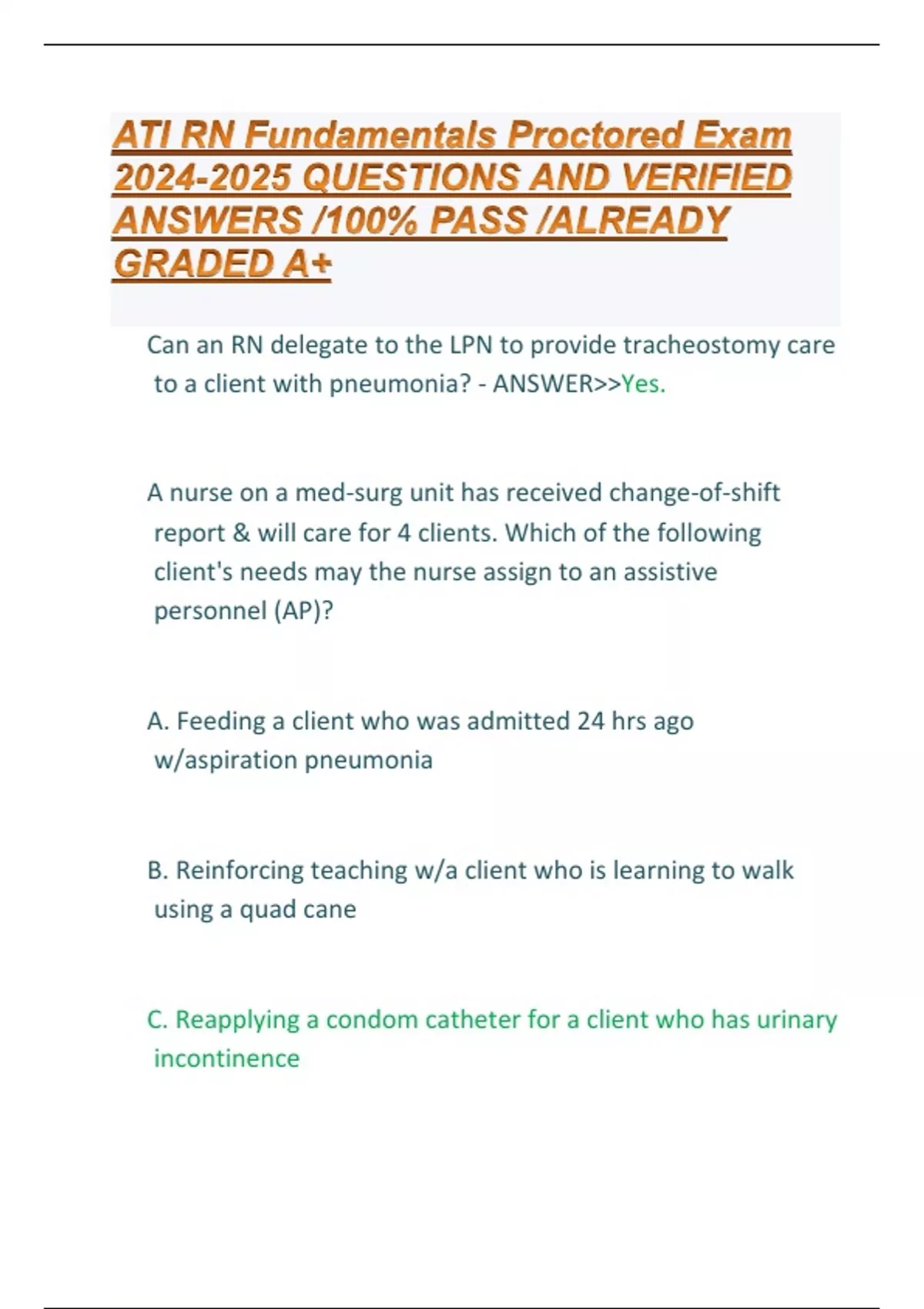 ATI RN Fundamentals Proctored Exam QUESTIONS AND VERIFIED ANSWERS /100% PASS /ALREADY GRADED A+