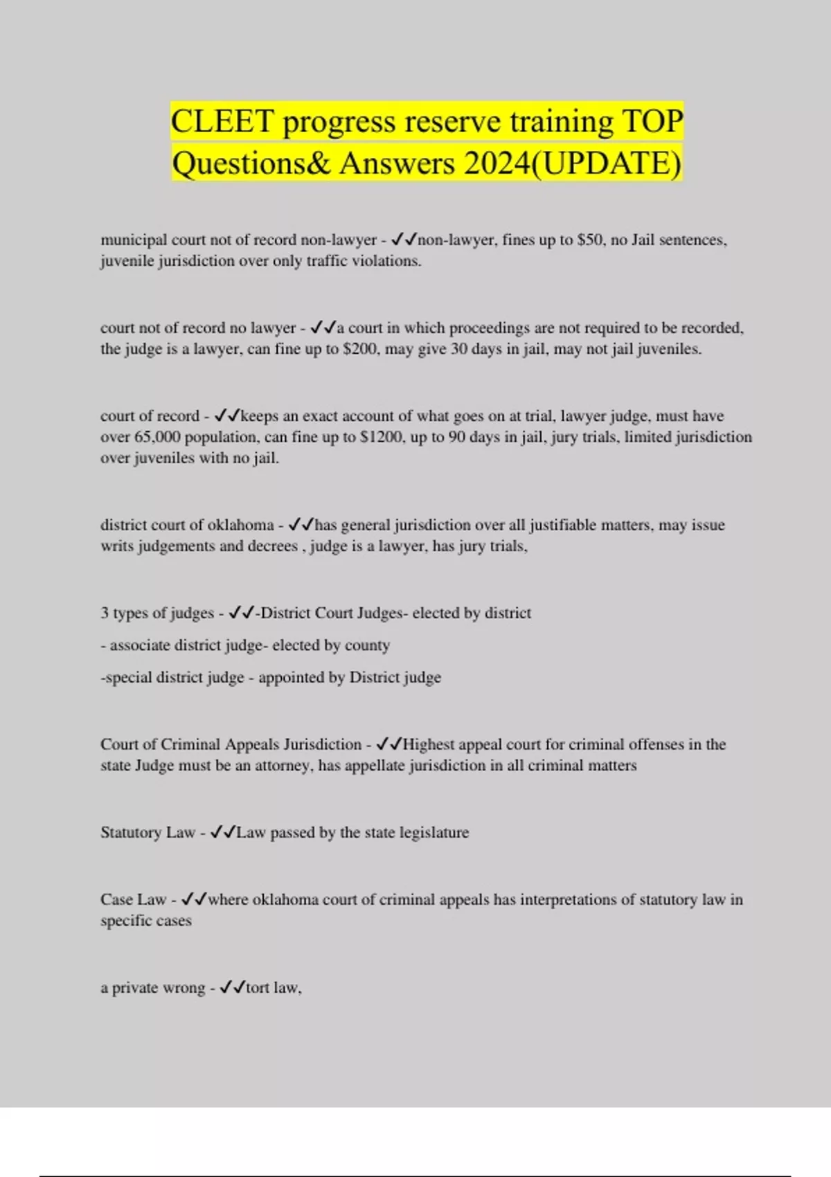 CLEET progress reserve training TOP Questions& Answers 2024(UPDATE)