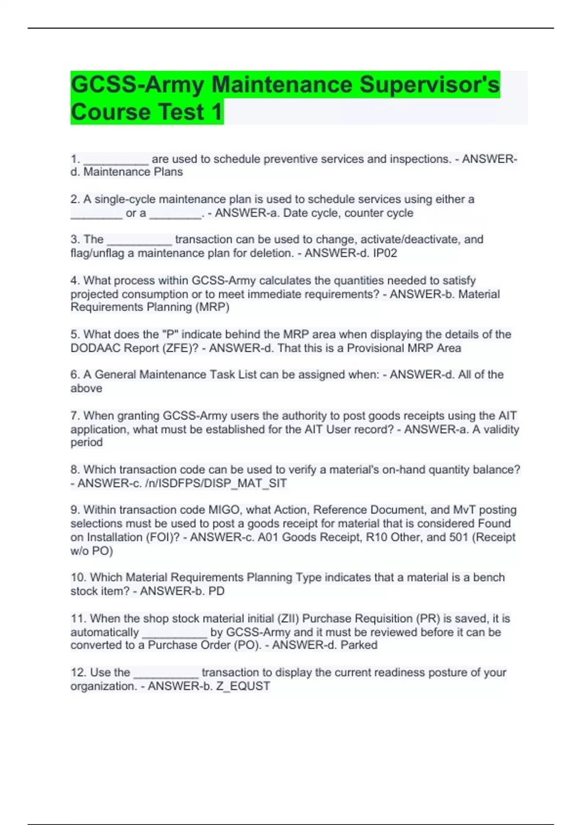GCSS-Army Maintenance Supervisor's Course Test 1
