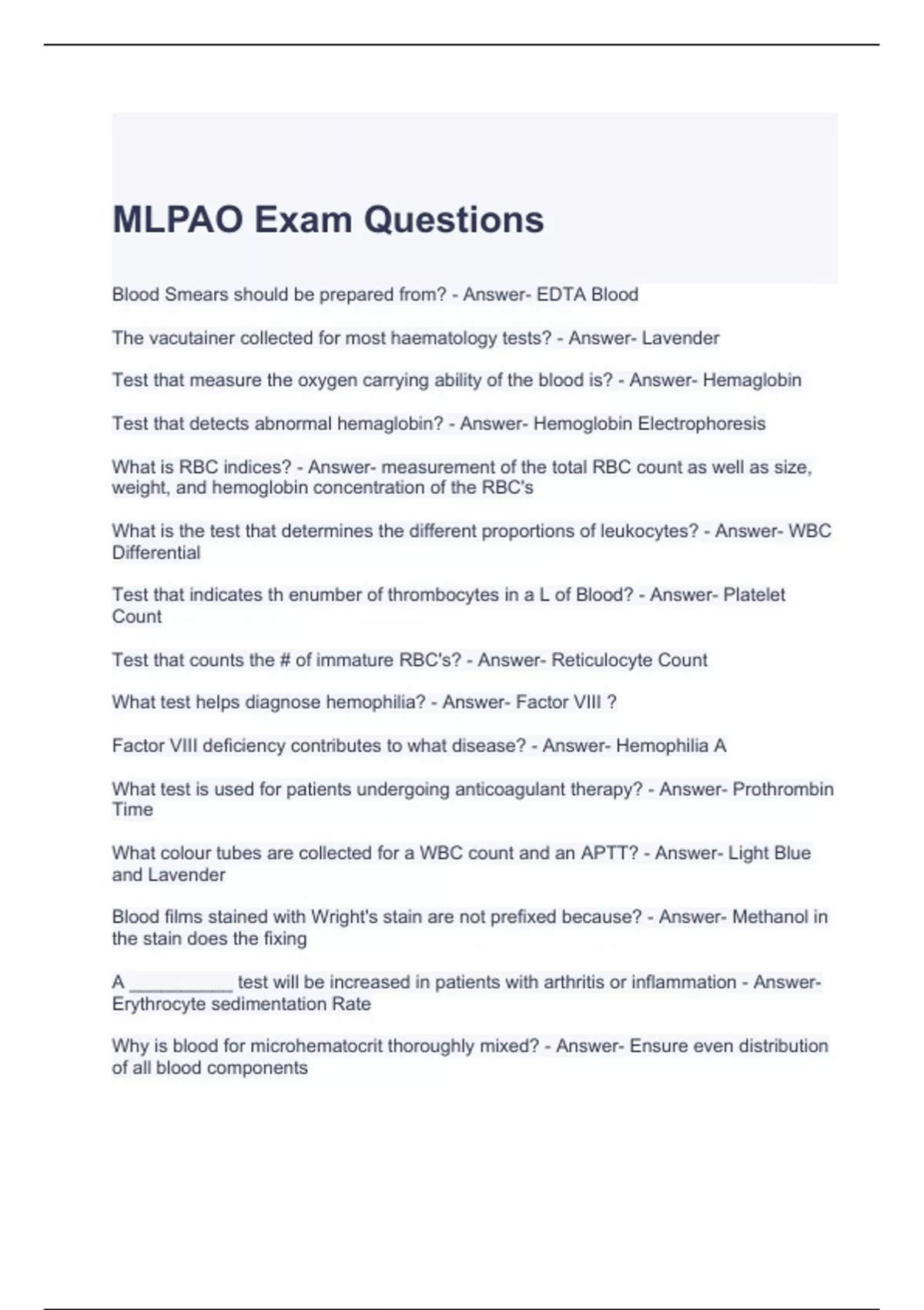 MLPAO Exam Questions with correct Answers