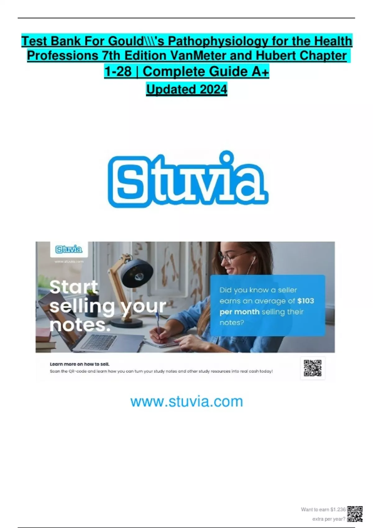 Test Bank For Gould's Pathophysiology for the Health Professions 7th Edition VanMeter and Hubert Chapter 1-28 | Complete Guide A+ Updated 2024