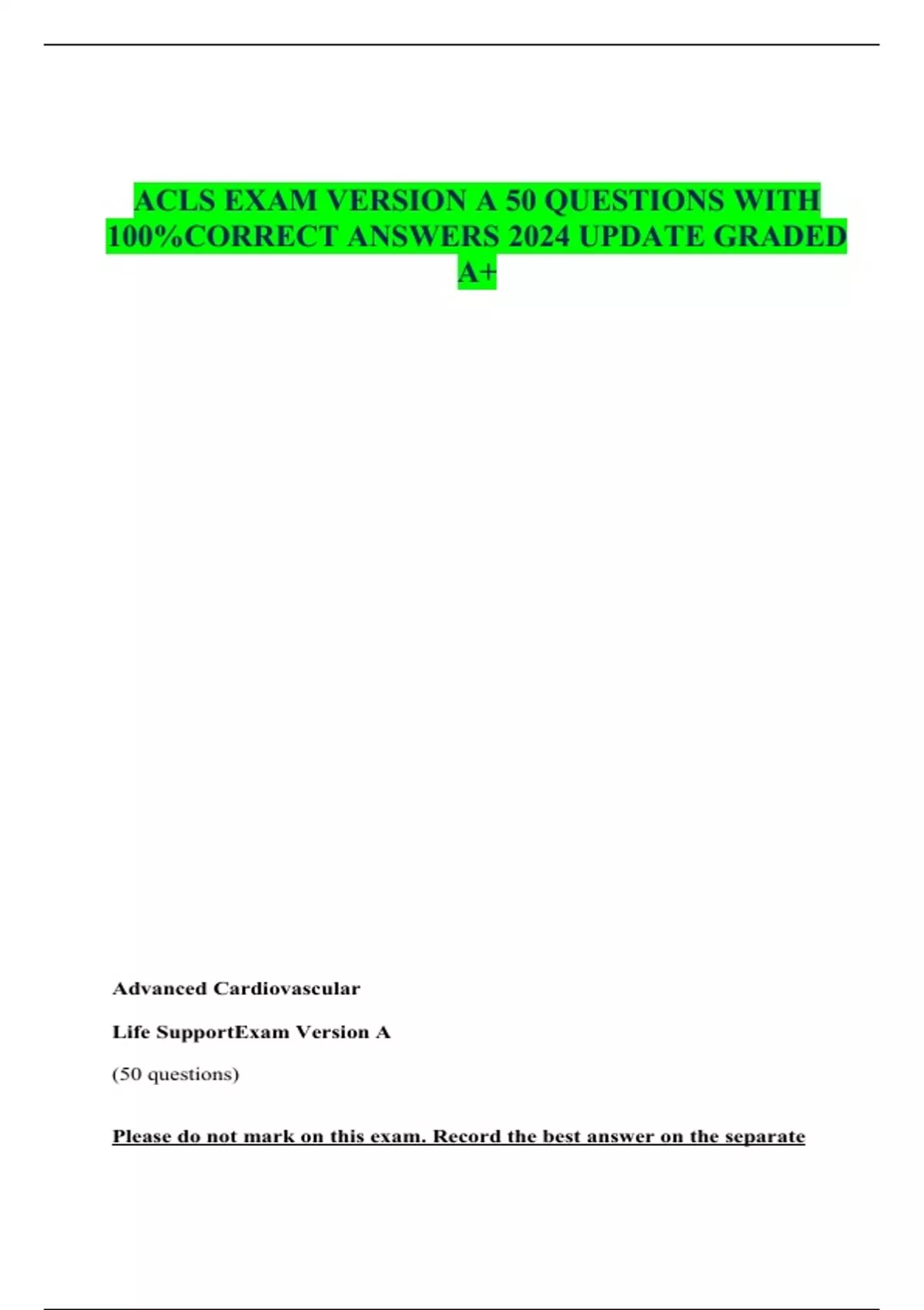 ACLS EXAM VERSION A 50 QUESTIONS WITH 100%CORRECT ANSWERS 2024 UPDATE GRADED A+