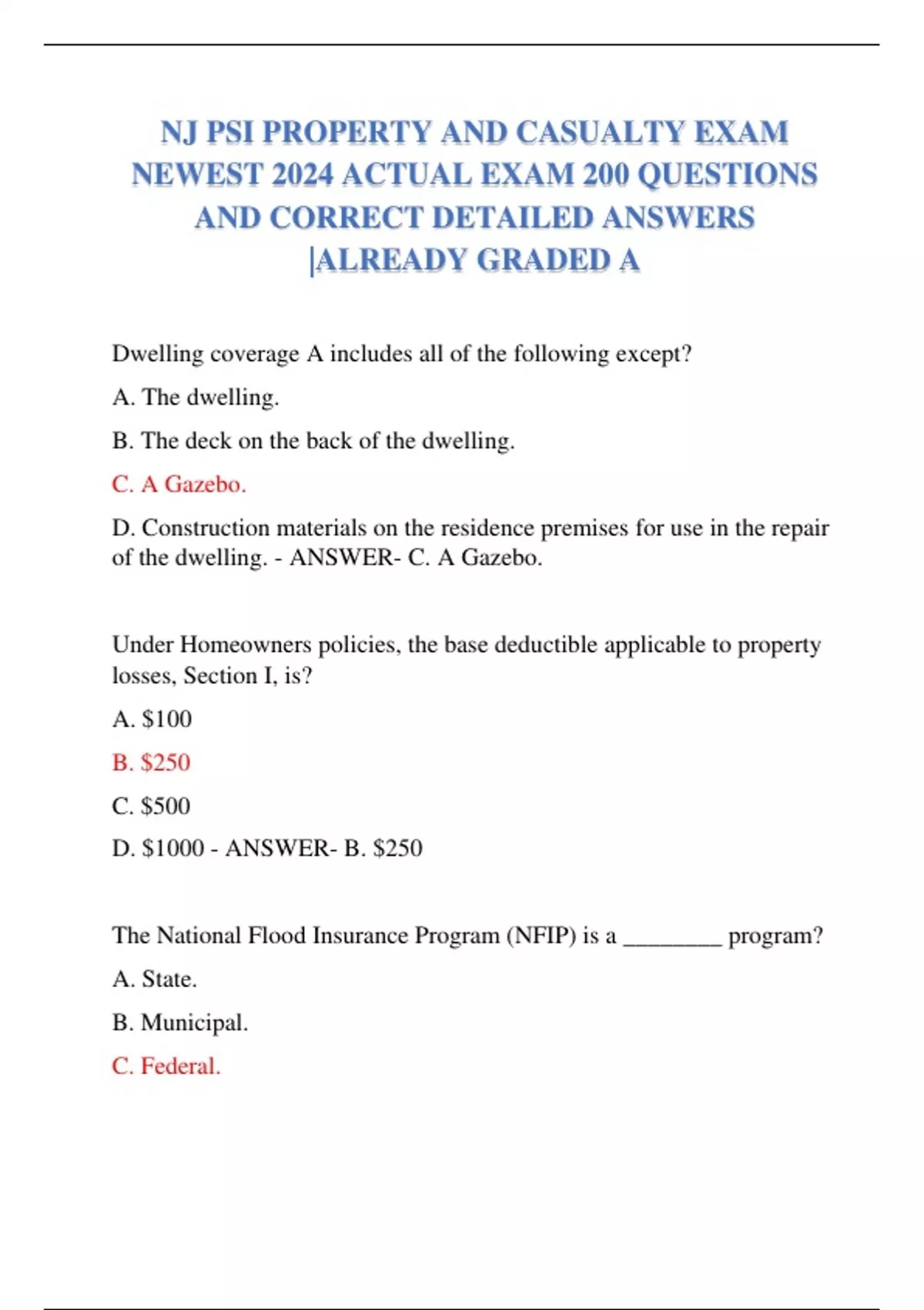 NJ PSI PROPERTY AND CASUALTY EXAM NEWEST 2024 ACTUAL EXAM 200 QUESTIONS AND CORRECT DETAILED ANSWERS |ALREADY GRADED A