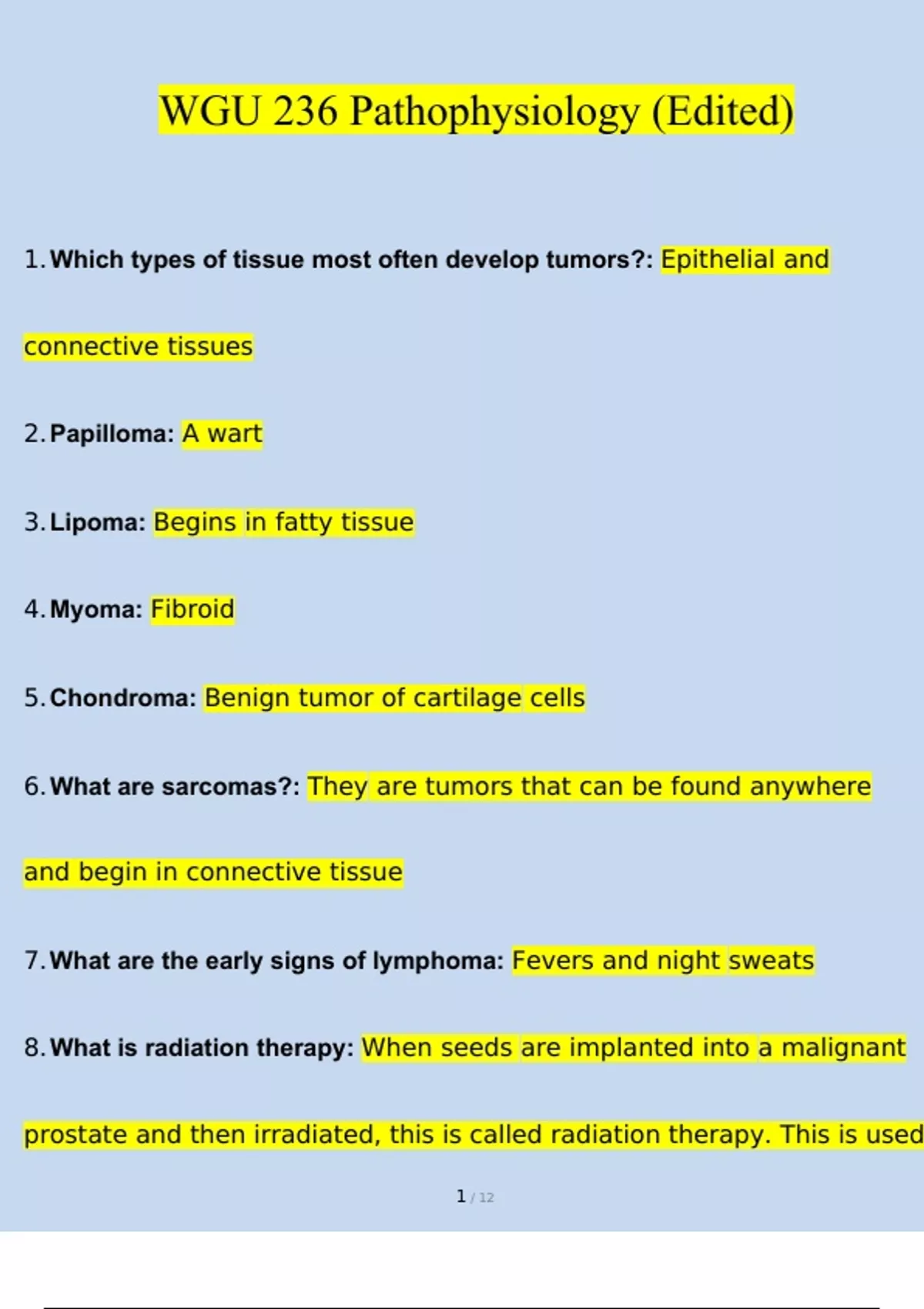 WGU D236 Pathophysiology (Edited) Exam | Questions with 100% Correct Answers | Verified | Updated 2024