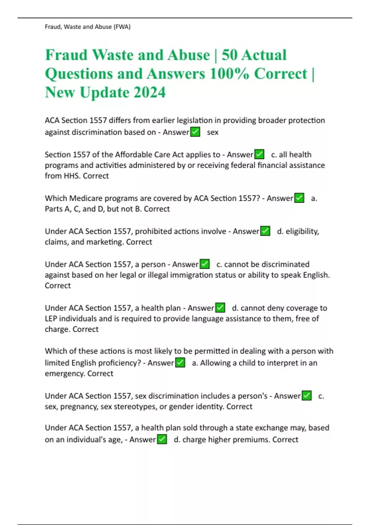 Fraud Waste and Abuse | 50 Actual Questions and Answers 100% Correct | New Update 2024
