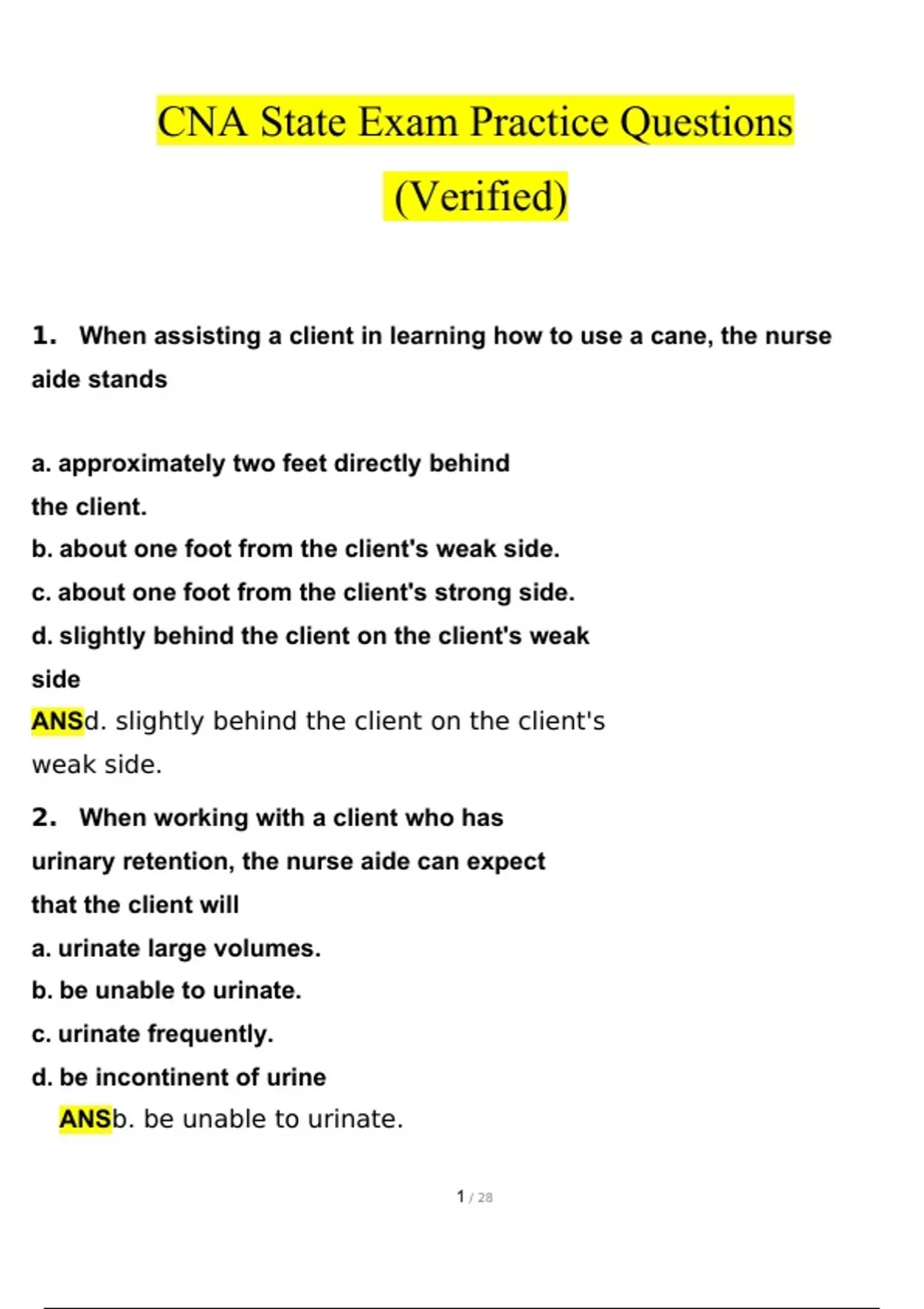 CNA State Exam Practice Questions and Answers 2024 / 2025 | 100% Verified AnswersCNA State Exam Practice Questions and Answers 2024 / 2025 | 100% Verified AnswersCNA State Exam Practice Questions and Answers 2024 / 2025 | 100% Verified AnswersCNA State Exam Practice Questions and Answers 2024 / 2025 | 100% Verified AnswersCNA State Exam Practice Questions and Answers 2024 / 2025 | 100% Verified AnswersCNA State Exam Practice Questions and Answers 2024 / 2025 | 100% Verified Answers