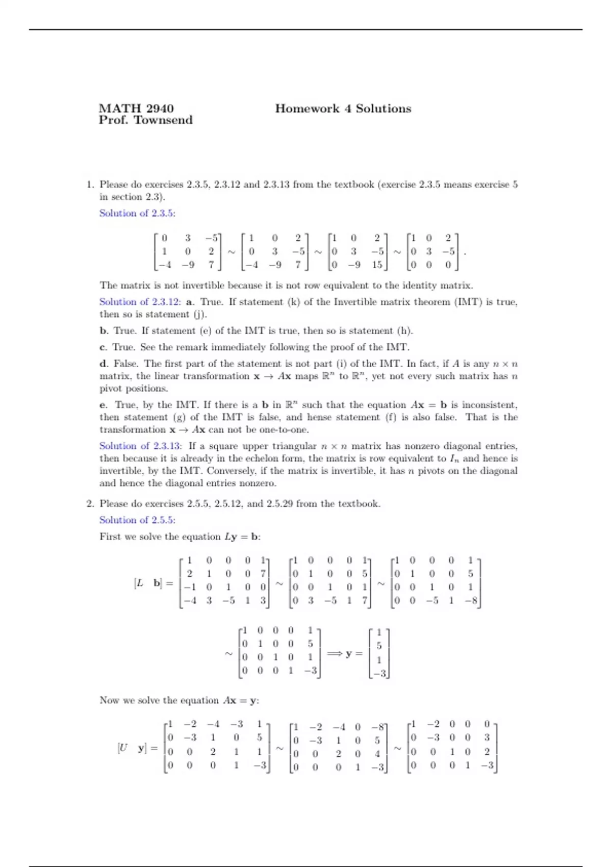 Linear Algebra Homework Solutions