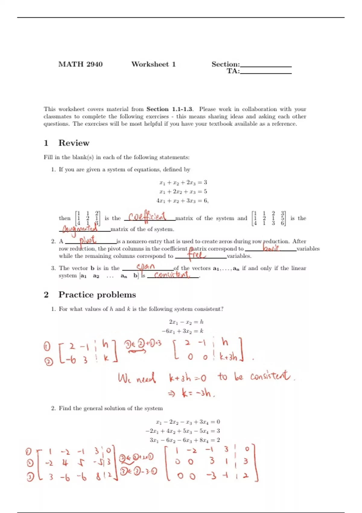 Linear Algebra Homework Solutions