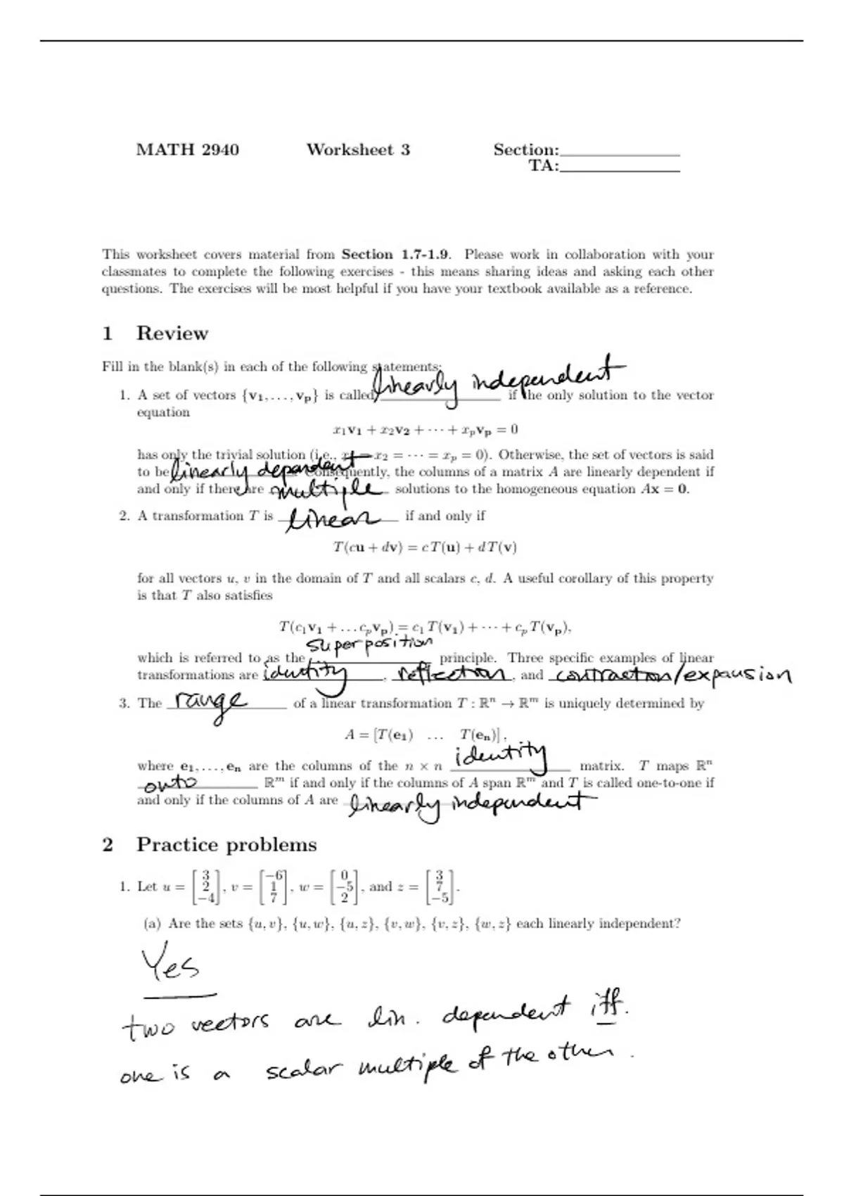 Linear Algebra Homework Solutions